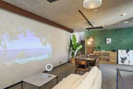 2Fリビングスペースの頭上にはpopIn Aladdinのプロジェクターを設置。リビングのソファーでゆったりと大画面で映画を楽しむなんて時間もよいですね。