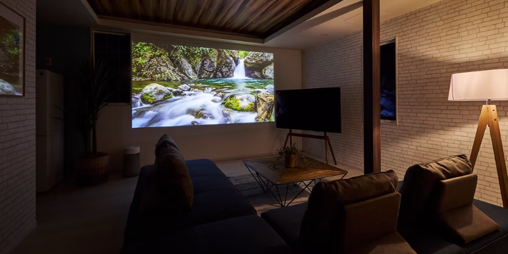 大きなプロジェクタースクリーンで、贅沢なホームシアター体験を楽しめます。