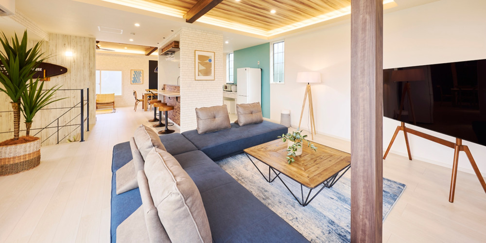家族や友人とのくつろぎのひとときを過ごすのに西海岸風のカジュアルリゾート感溢れる空間です。