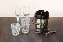 カウンター上にはグラスが吊り下げられ、家庭的でありながら洗練された雰囲気を演出しています。
