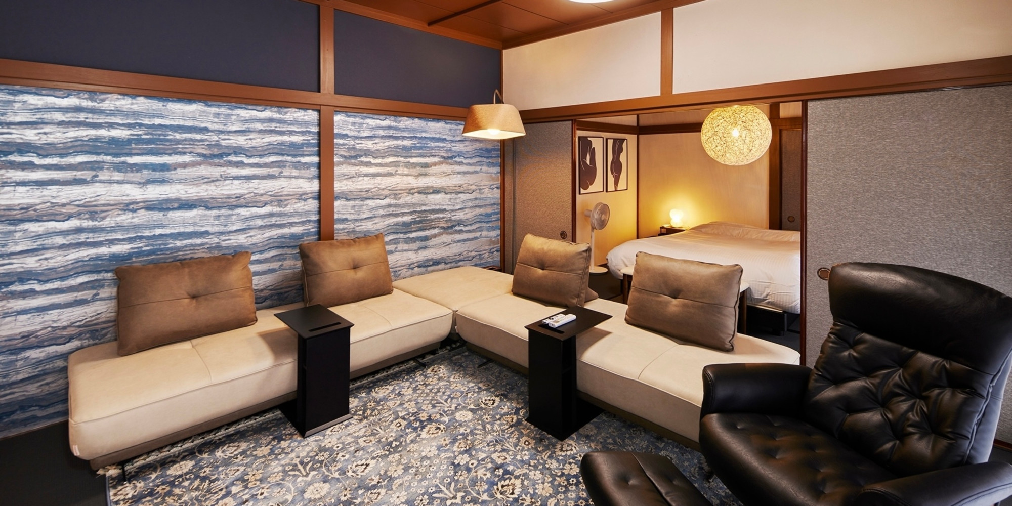 波の音=海の声が聞こえる縁側、日本家屋の良さを活かしたインテリアでお寛ぎいただける空間に仕上げました。