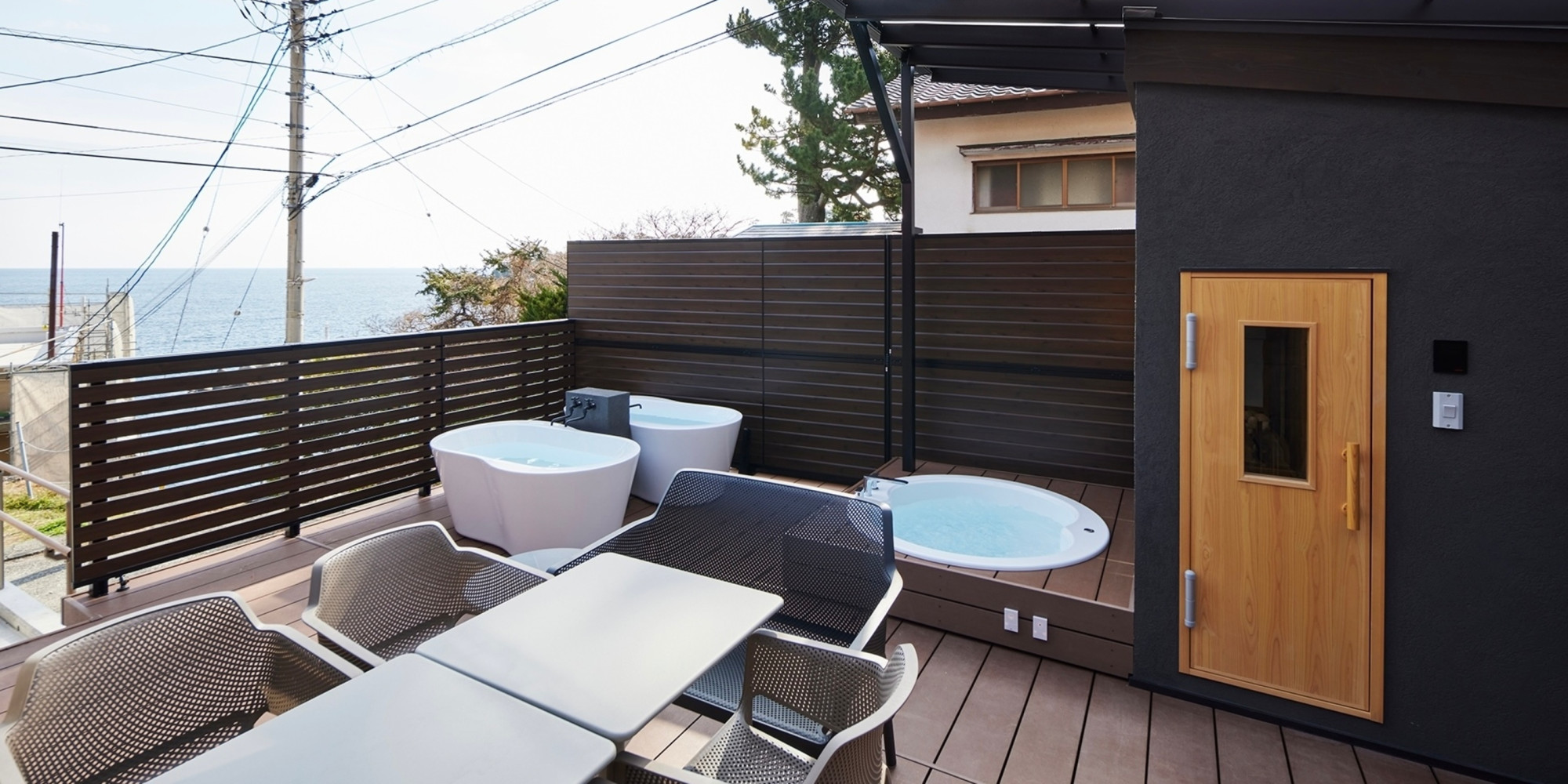 眼下に広がる海と波の音、カモメの声を聞きながら、サウナやジャグジー、露天風呂を満喫。