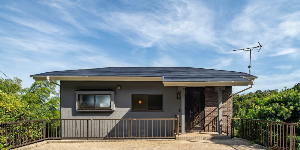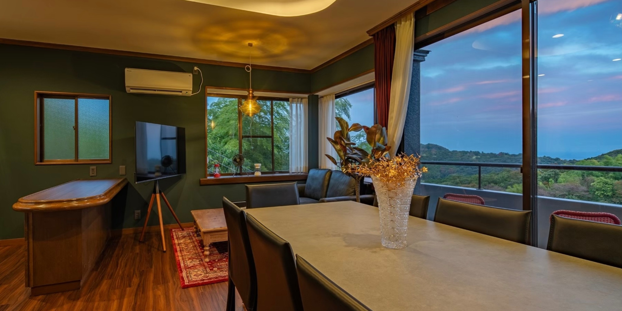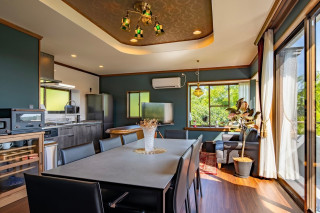 伊東の森、空、海を見渡す緑に囲まれた高台に佇む温泉付き一棟貸し別荘