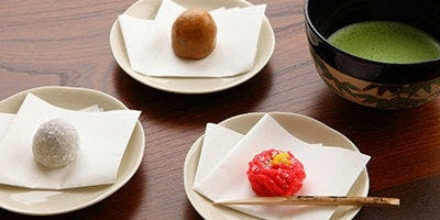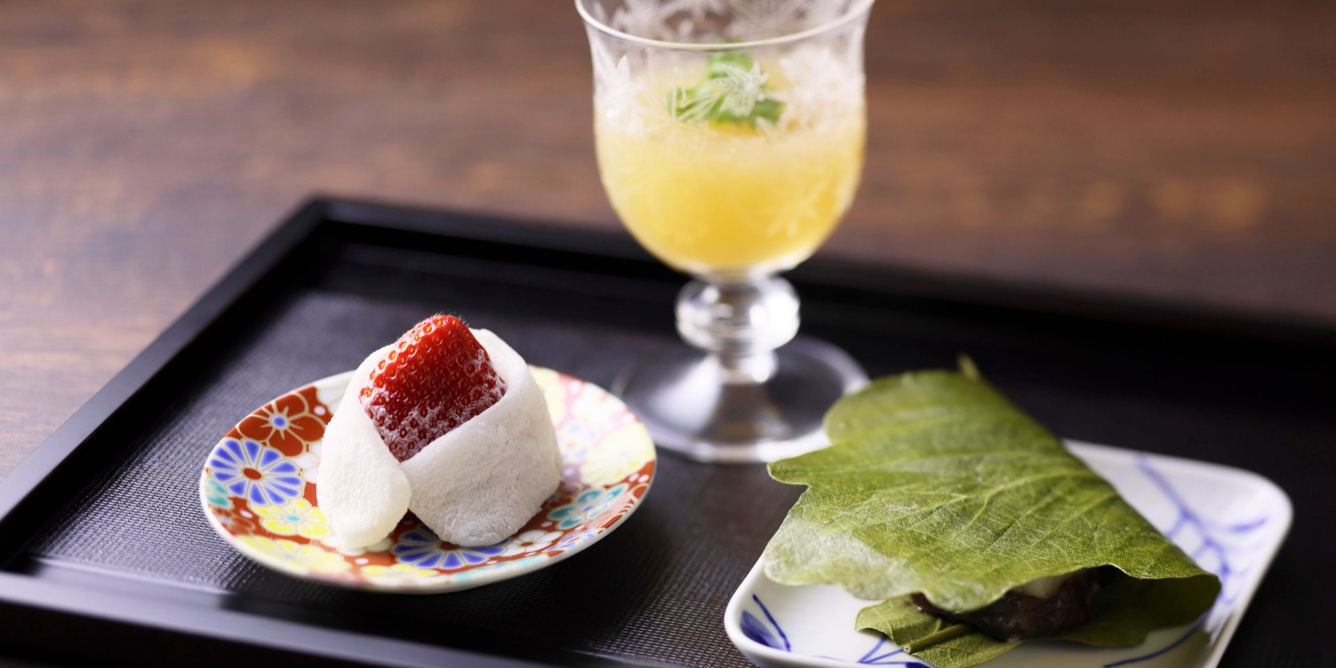 ウエルカムドリンクのお抹茶と和菓子をご提供しております。
