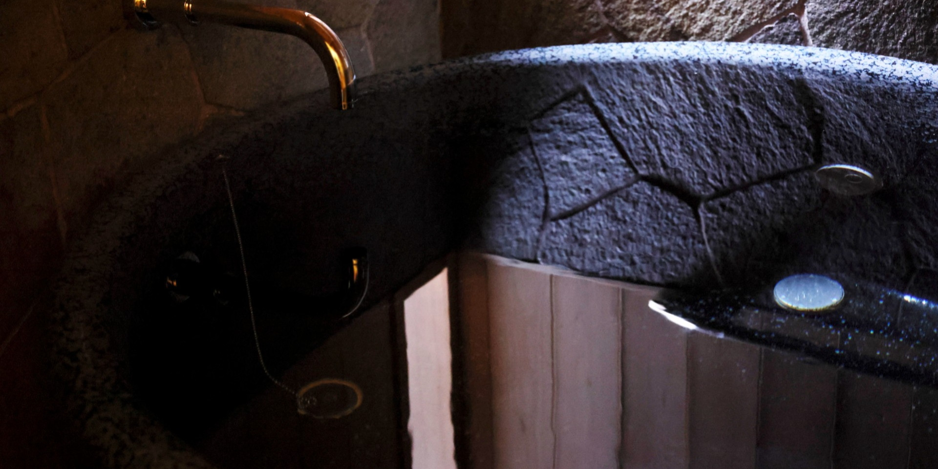 ゲルマニウム浴のできる信楽焼きの陶浴槽や、イタリアンモダンファニチャー「カッシーナ」の家具と、和モダン「モリシゲ」で統一。