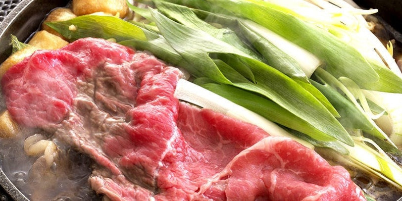 お鍋・・・黒毛和牛、九条ねぎやちくわ麸をふんだんに使用した、京都ならではのすき焼きです。