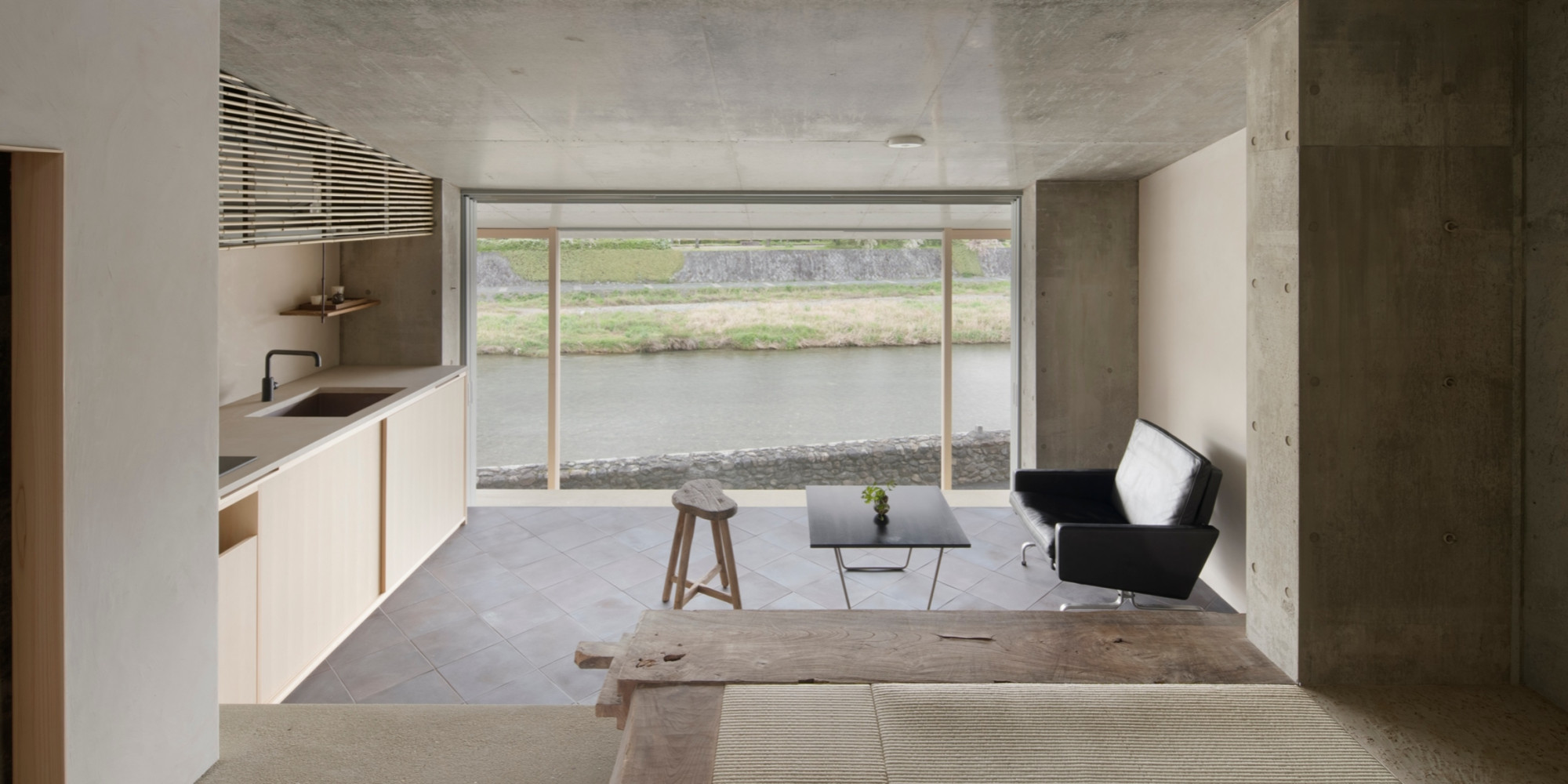 部屋の大窓から鴨川の穏やかな景色を眺めながら、心安まるひと時をお過ごしください。