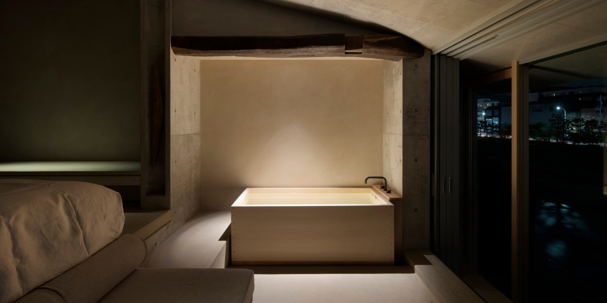 大きな窓から鴨川を眺めながらお楽しみいただけるバスタブをご用意。