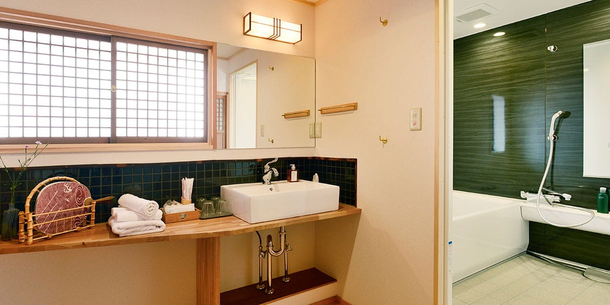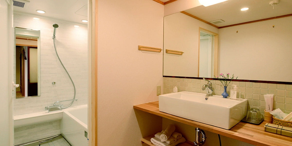 2階客室「雲」。 12畳ある和室に広々としたバスルームや洗面室、お二階は雲の間だけのプライベートスペースでございます。