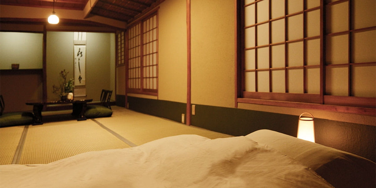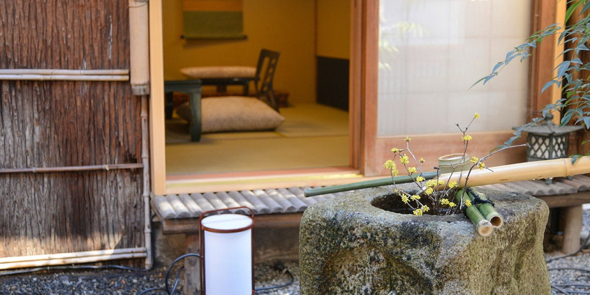 障子を通して差し込む柔らかな朝日に目覚め、京都の旬を朝膳にて味わい、1日の疲れを坪庭に灯る夕刻の灯篭に癒される。