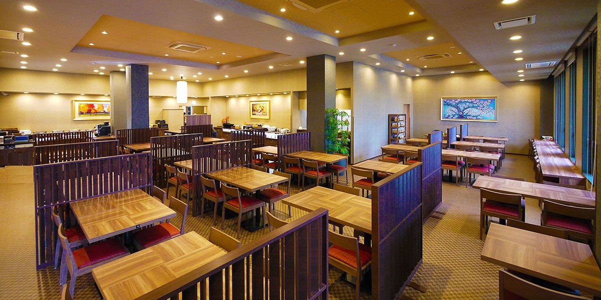 夕食と、朝食バイキングをご利用いただけるレストラン「四季の蔵」和食膳や旬の食材を使った懐石まで落ち着きの空間でご堪能いただけます。