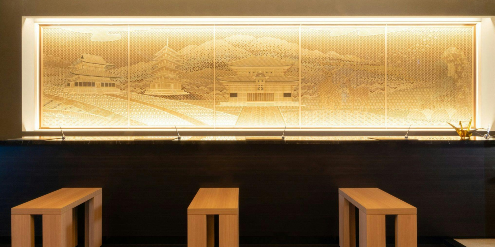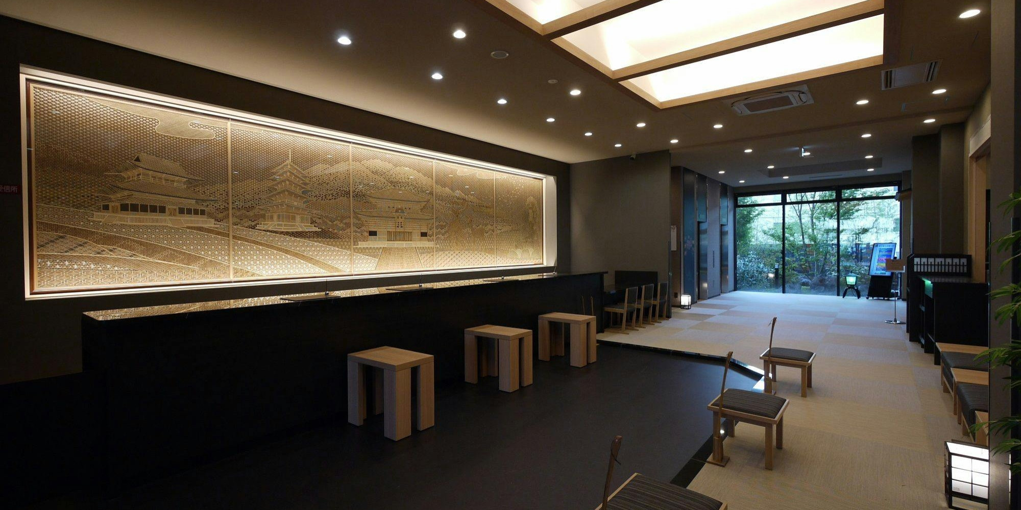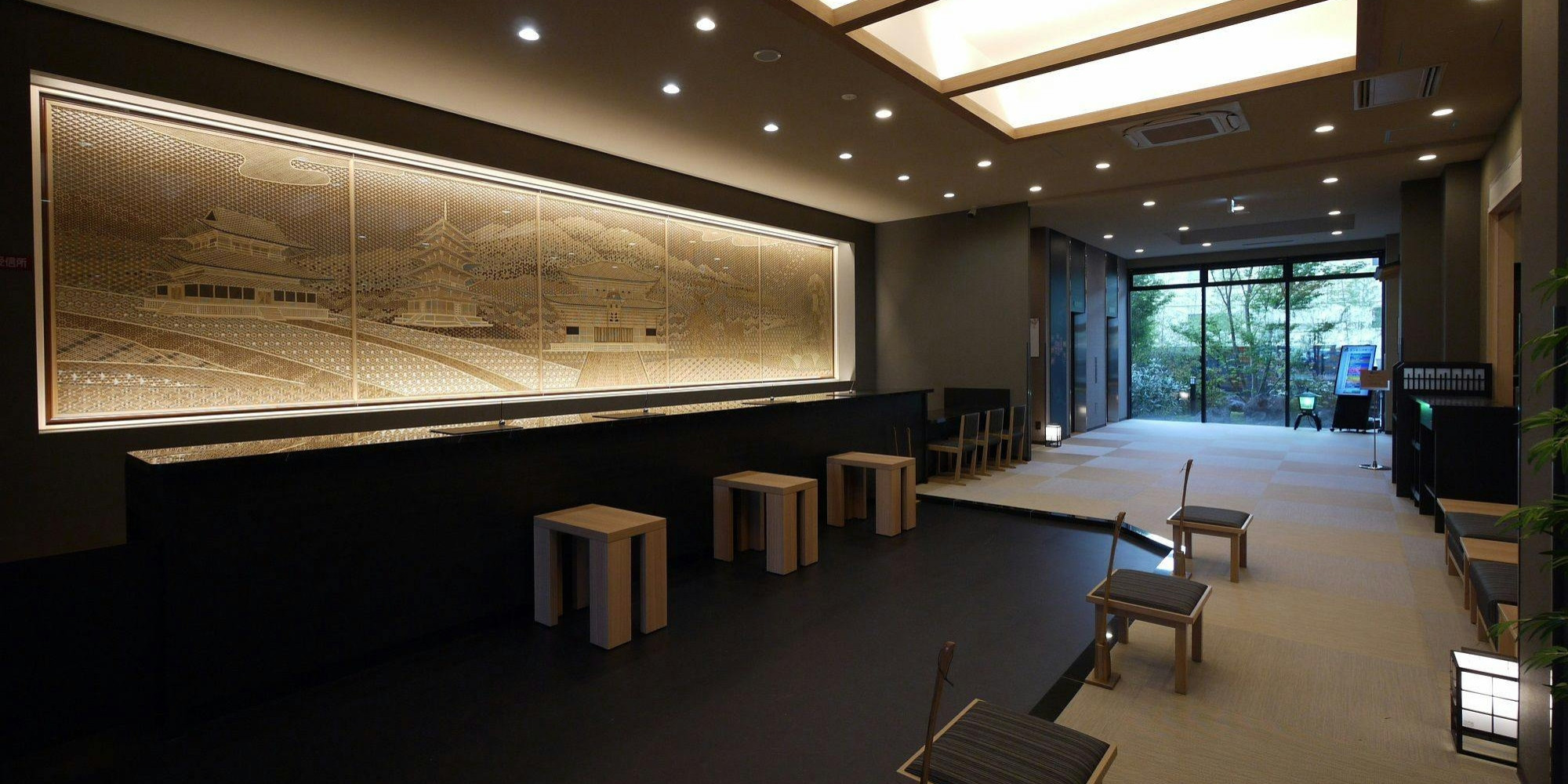 ロビーには組子細工があり、お客様をお迎えいたします。