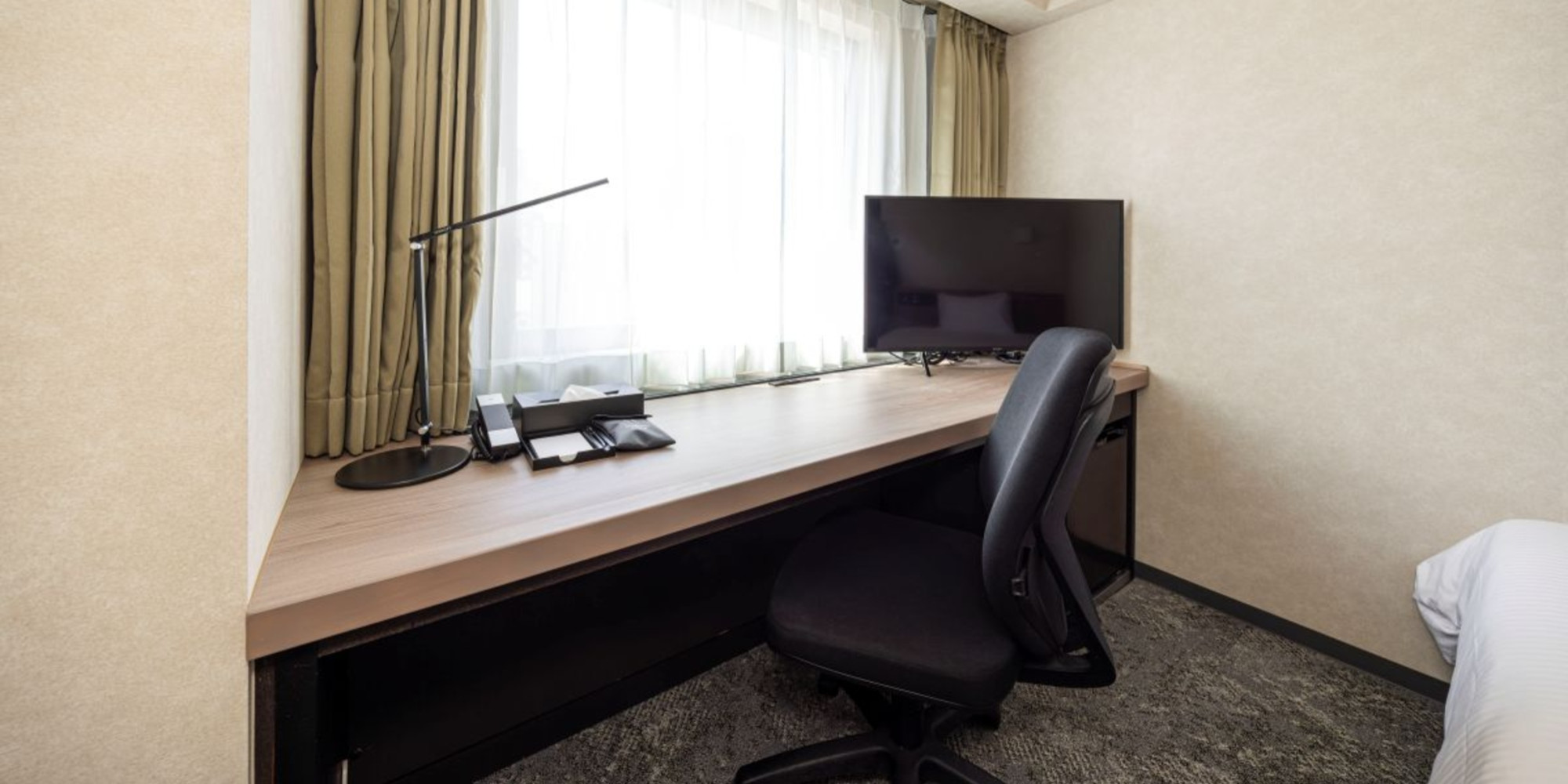 ホテルでのデスクワークをより快適に行って頂く為、書類とノートPCを広げても余裕のワークスペースを確保しております。