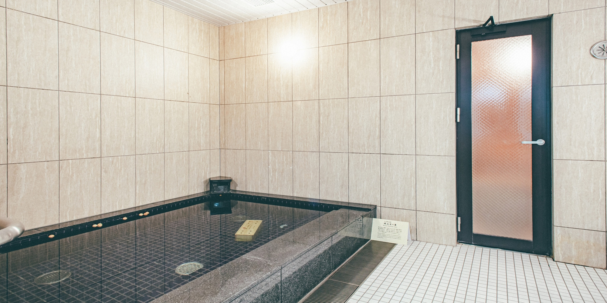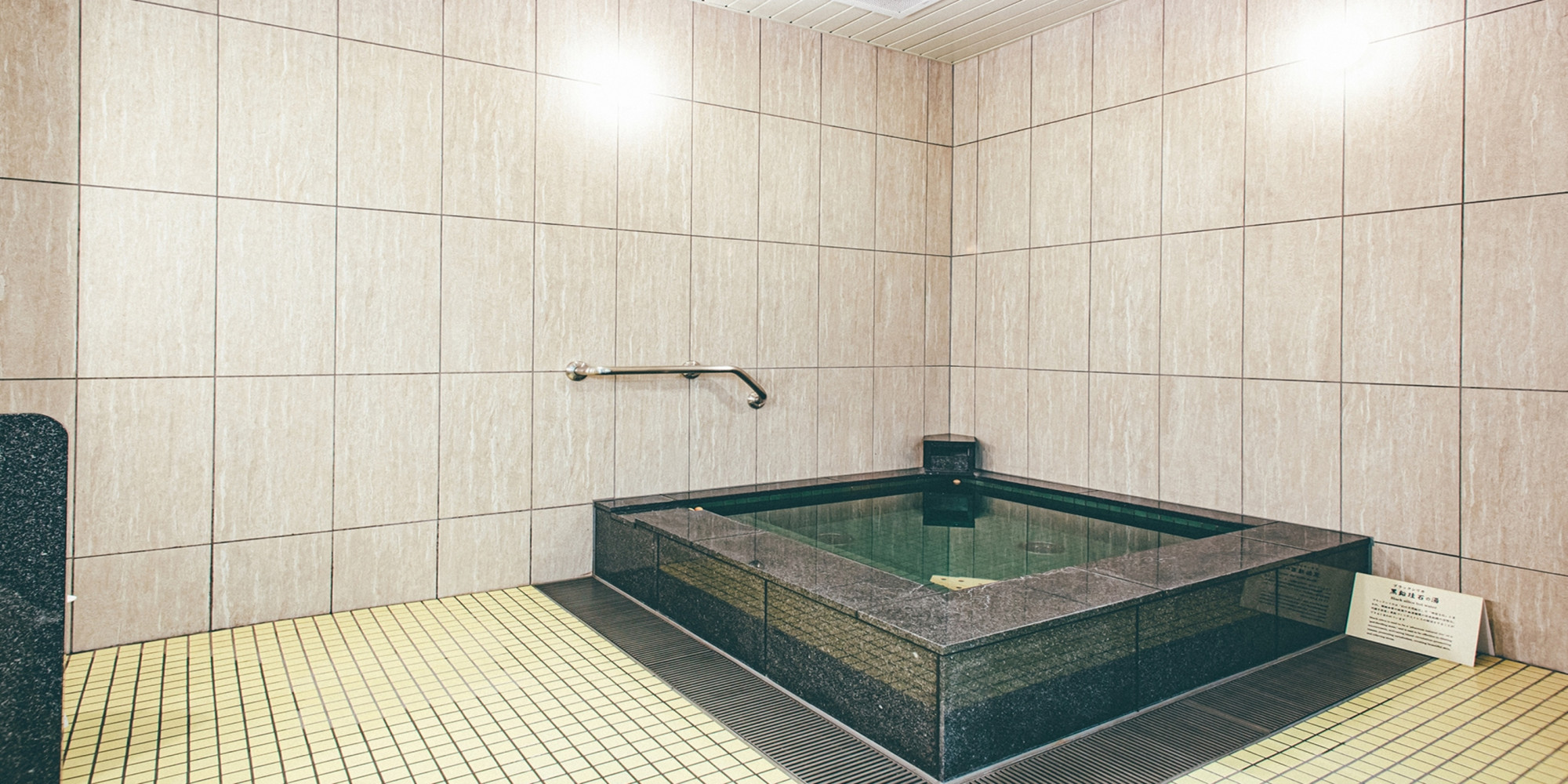湯舟には天然鉱石のブラックシリカ、希少な溶岩石の焼山石を男女入れ替えでご用意。