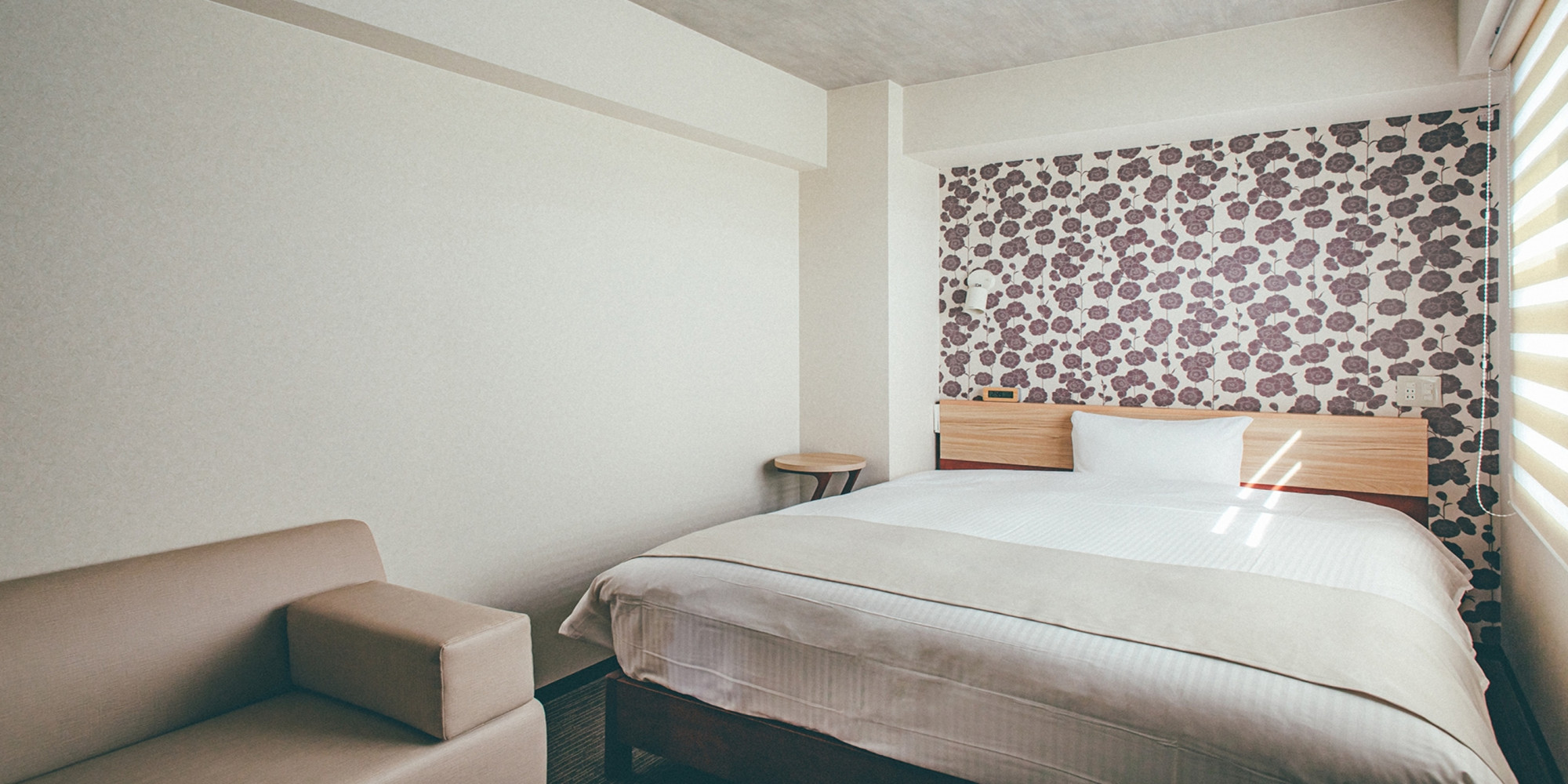 ゆったりとお寛ぎいただける、シンプルで落ち着いた雰囲気のダブルルームです。