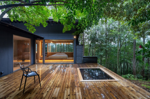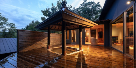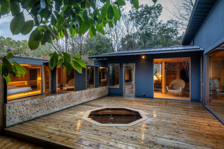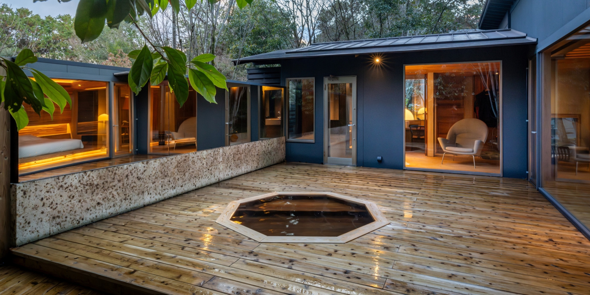 それぞれの空間に寄り添うように床下へと設えられた露天風呂。