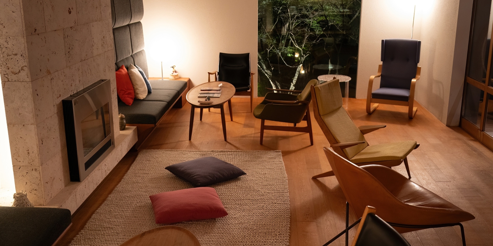 お部屋以外の「おふたりの居場所」。時間さえ忘れてしまうここは、まるで北欧の別荘に来ているようなやさしい空間。静かで心豊かなひとときをお過ごしください。