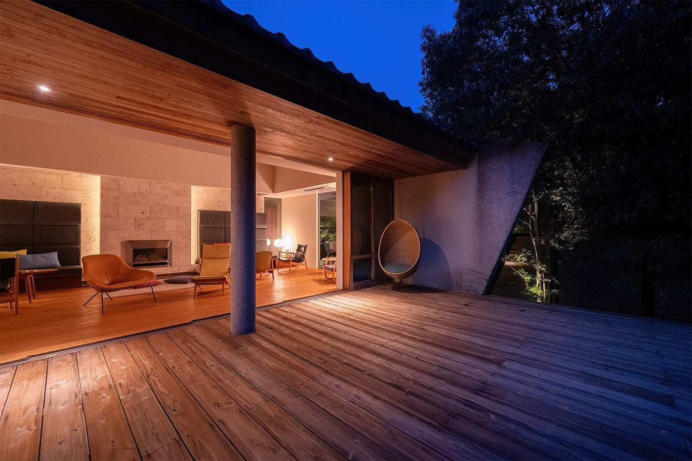 デッキからの風を感じられるお部屋。温かい陽が差し込み、夜は星も愉しめる。