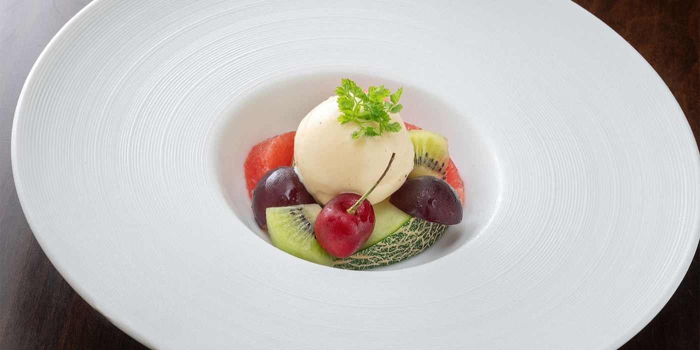 ご夕食は本館のお食事室にて和洋折衷のコース料理をご用意しております。