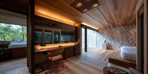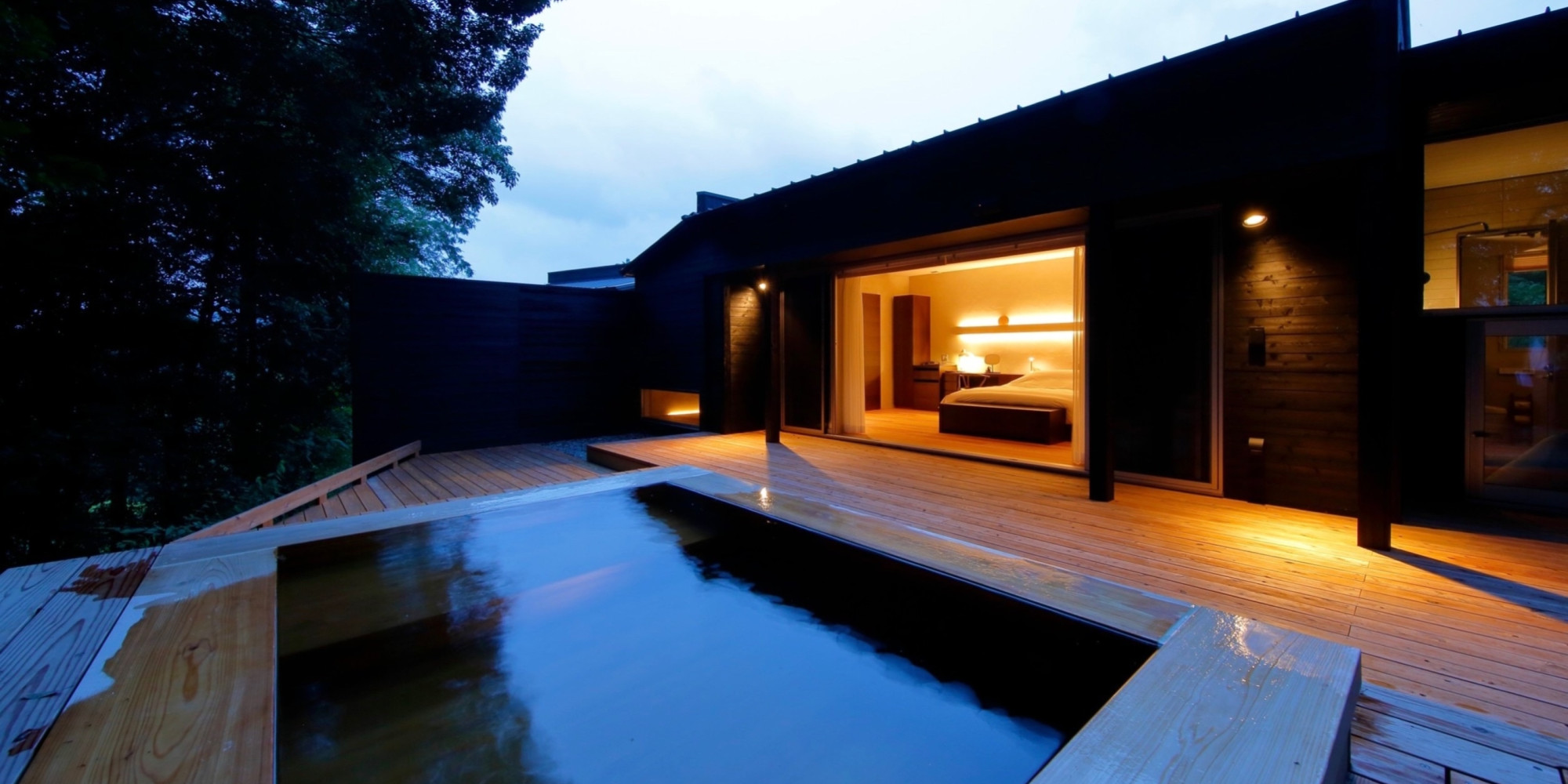 約5,500坪の敷地にわずか11室の露天風呂付客室。森と自然に囲まれた、おふたりだけの世界でゆっくりとお過ごしくださいませ。