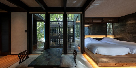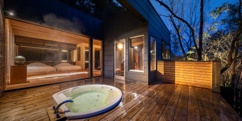 露天風呂付き離れ客室、全11室。大人二人専用のおこもり宿。