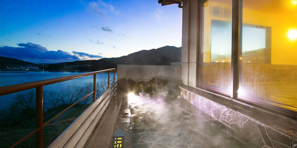 大船渡湾の絶景を存分に堪能できる展望大浴場、潮風や波音をじかに感じる当館自慢の露天風呂。