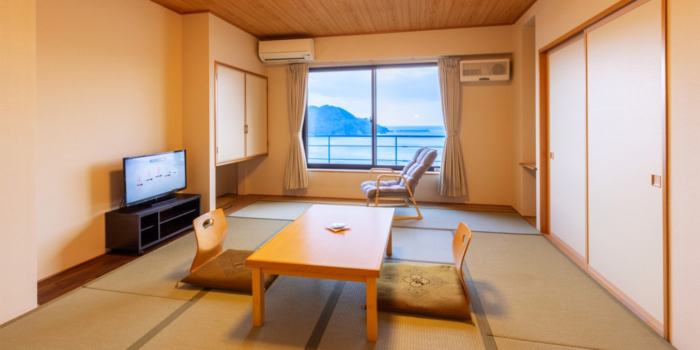 露天風呂から望む太平洋とオーシャンビュー客室からの眺めは圧巻です。