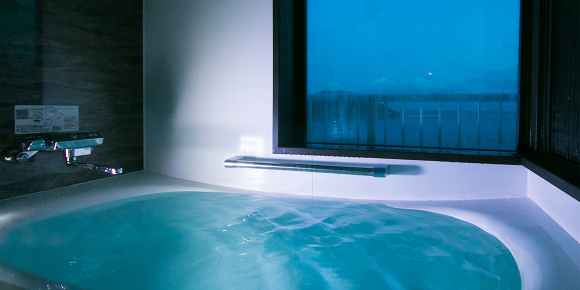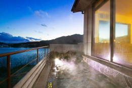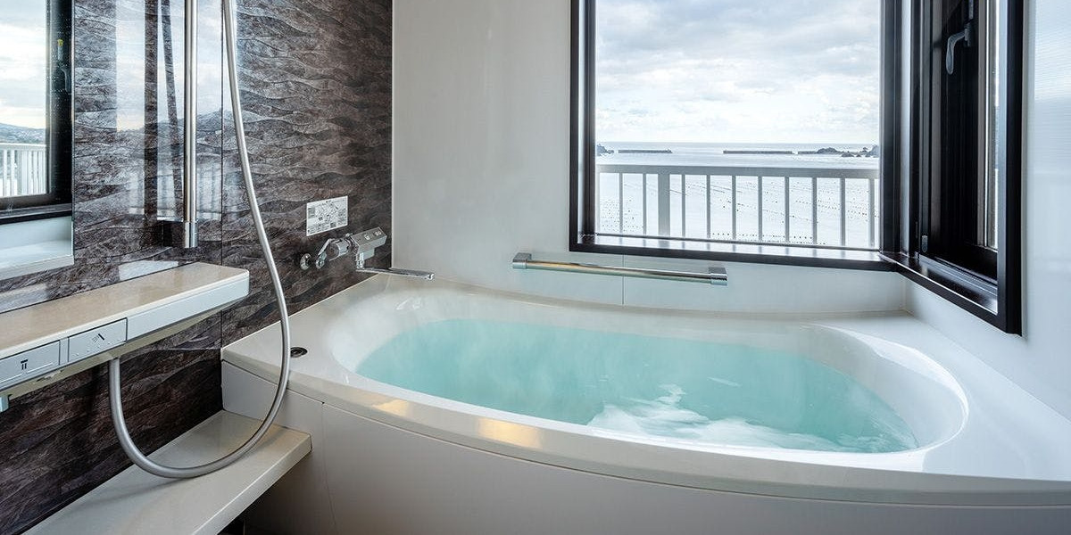 少し肌寒い空気と温かい湯船の中で眺める海景色はまさに至福のひと時。