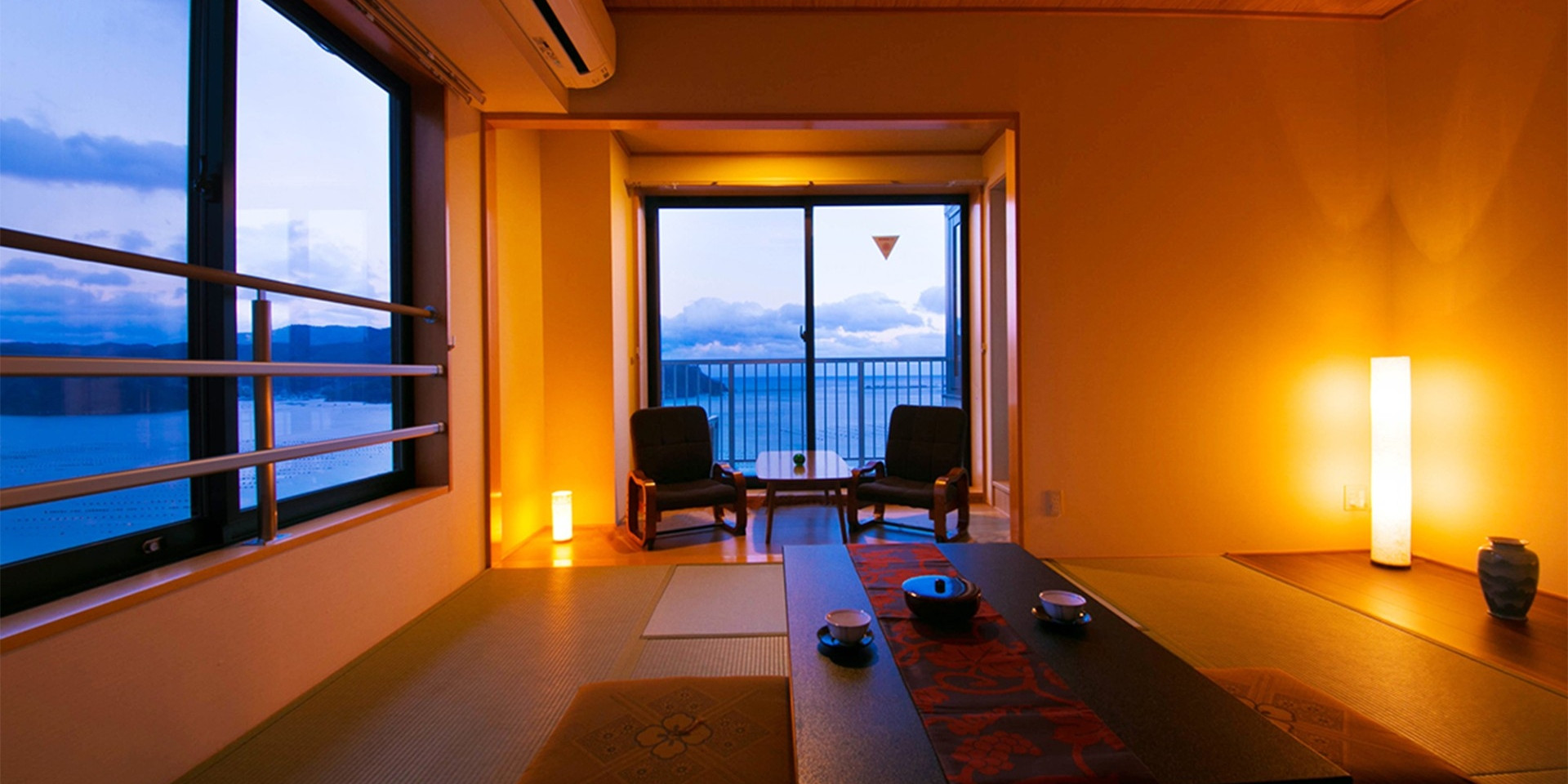 ご到着時やご出発前にお寛ぎいただくのはもちろん、早朝にこちらのロビーから見る日の出も格別です。