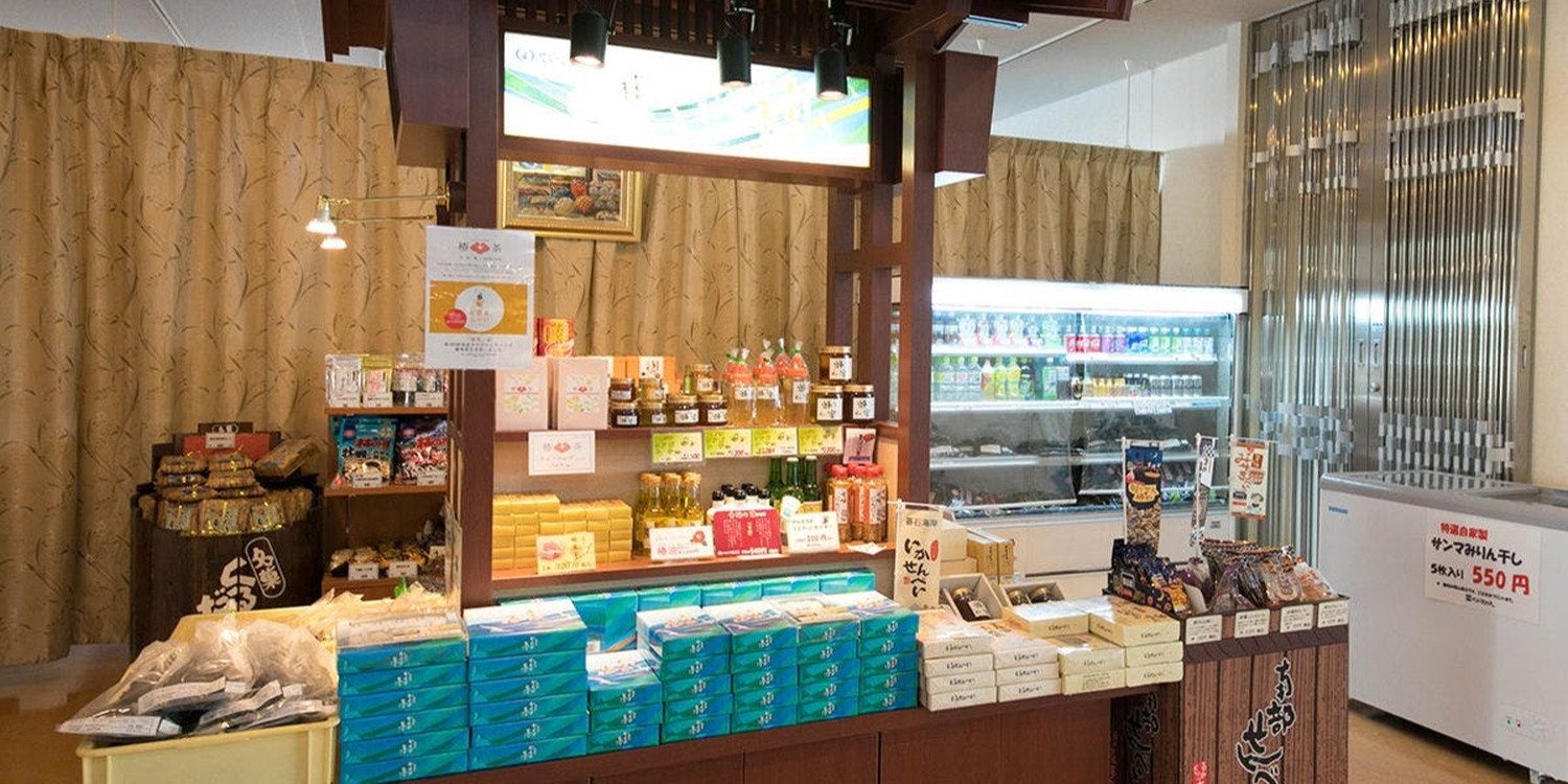 自慢の海産物や漬物、珍味、お酒、お菓子のほか、滞在中に便利な軽食や飲み物もご用意しています。