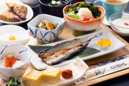 大船渡温泉の食事は朝食もボリューミー。
