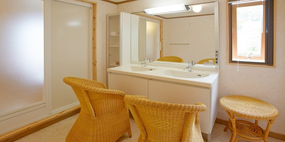 広めのパウダールーム、ゲストルームはツインベッドを備えたお部屋を2部屋ご用意しております。