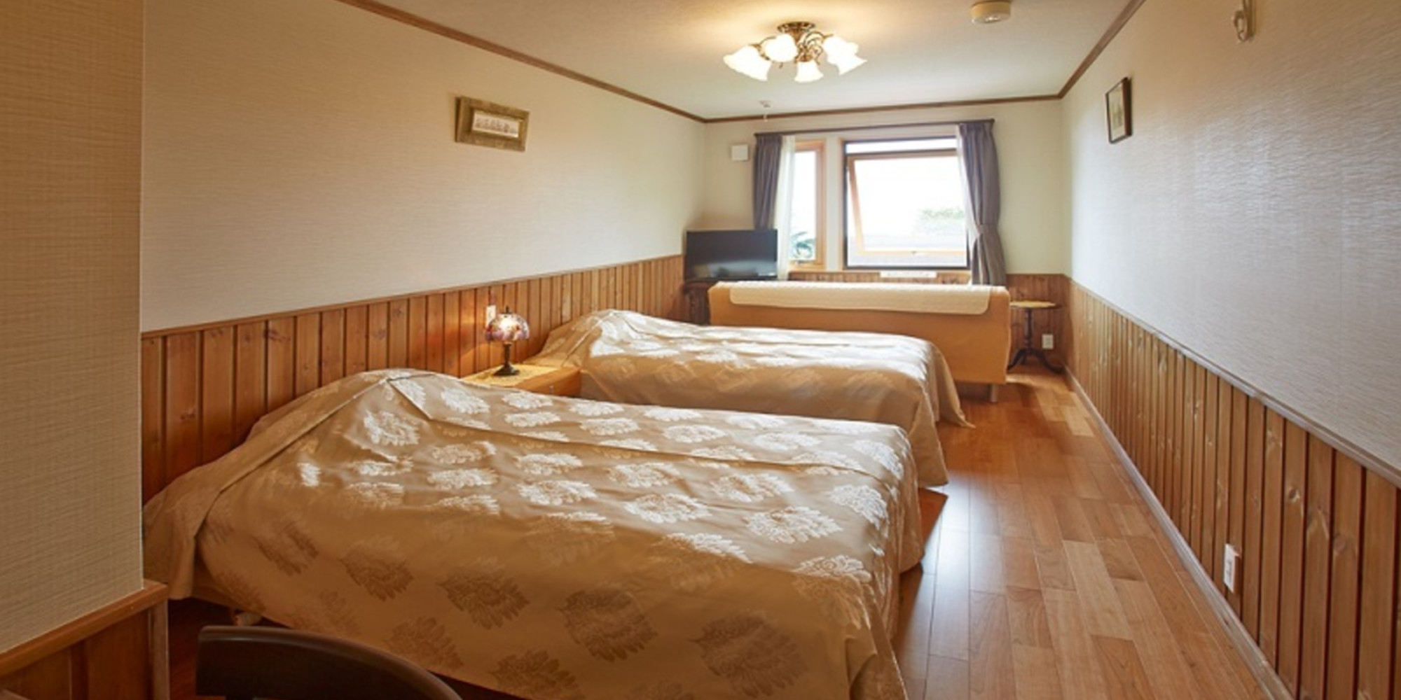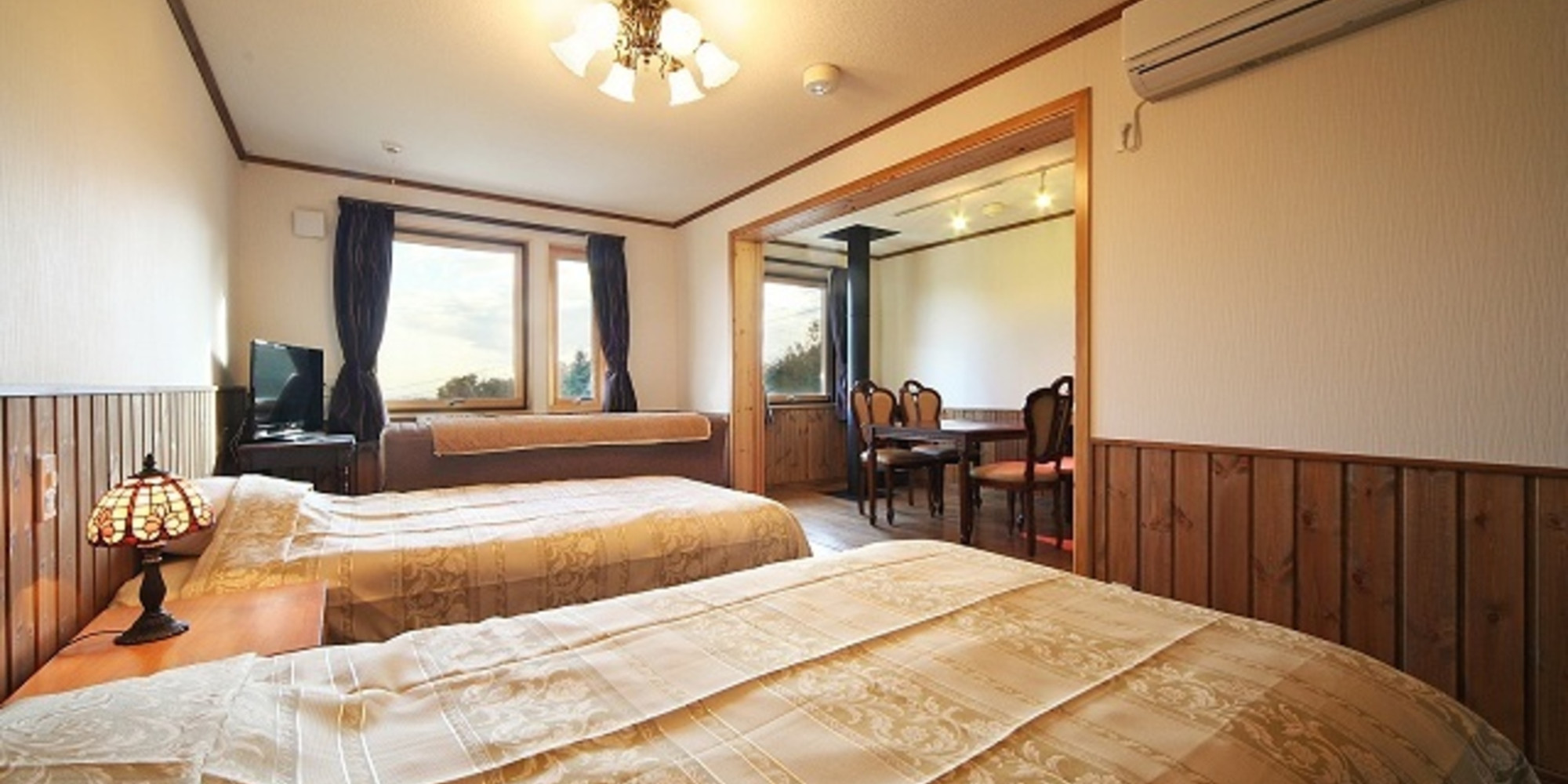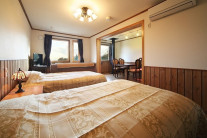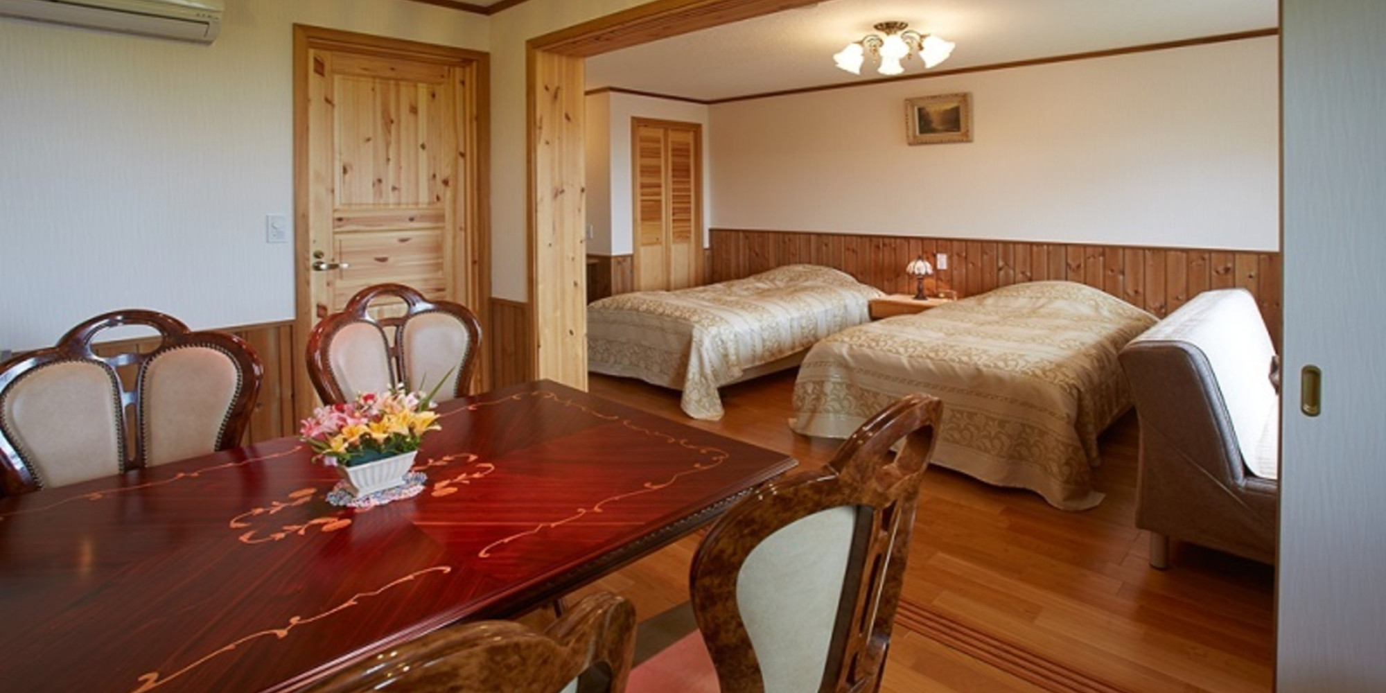 無垢材を多く使ったスウェーデンハウスの客室は、暑さ寒さからの影響が少ない高気密高断熱。