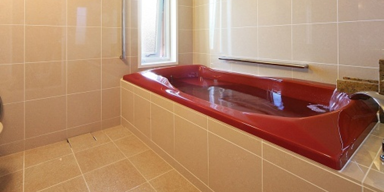 大室温泉を引いたモダンなバスルームは24時間利用可能です。