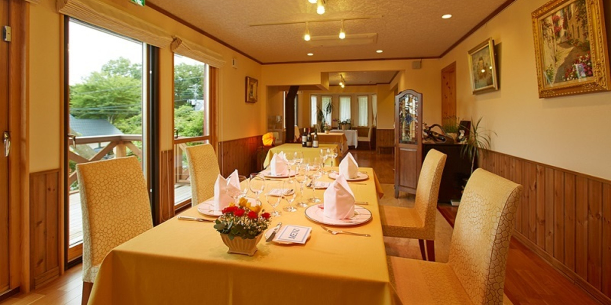 朝は太陽の光、夜は暖炉の灯りでフランス料理をご堪能ください。