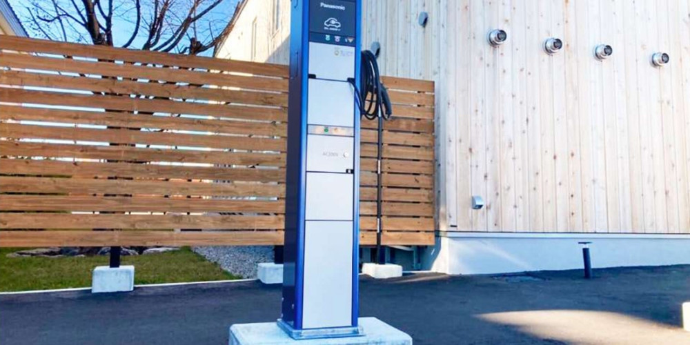 ご宿泊者の方が無料で使えるEVカーの充電スタンドを設置。