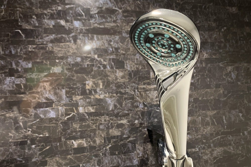 客室のユニットバスにはRefaのシャワーヘッドを装置。