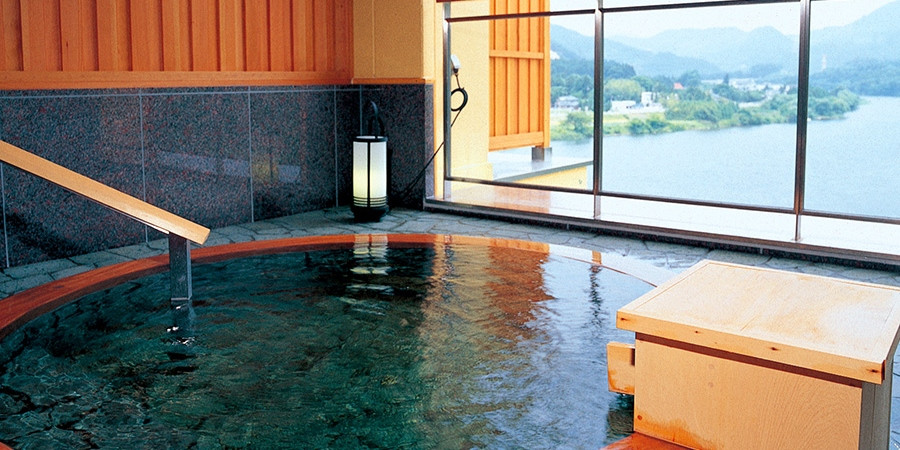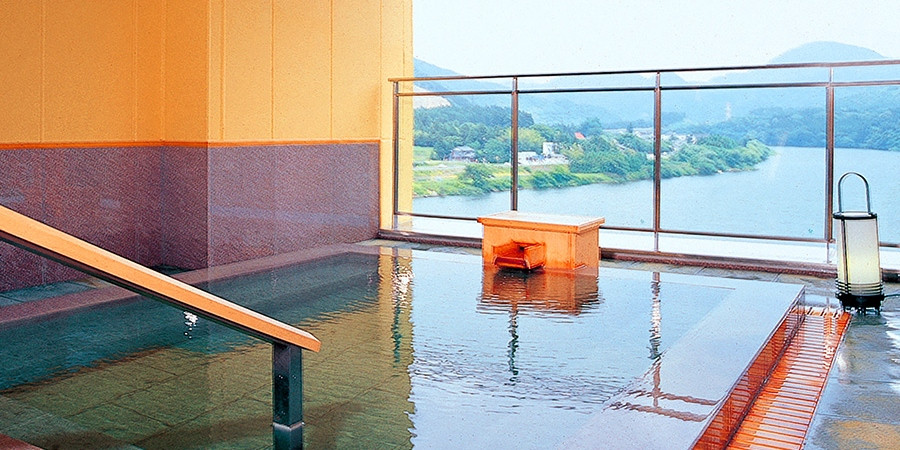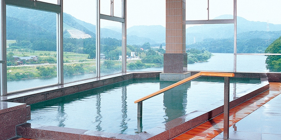 阿賀野川を眺めながらゆったりのんびり新設のビューバスをお楽しみください。
