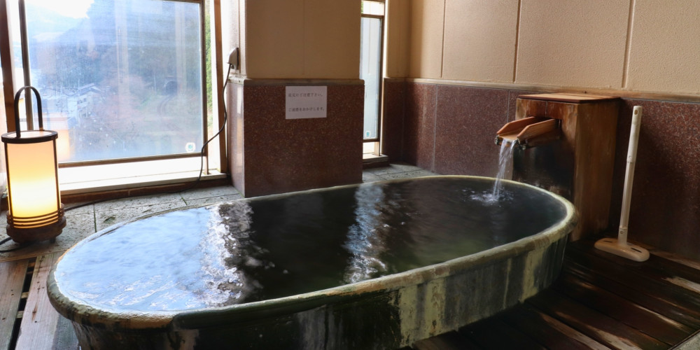 咲花温泉自慢の天然温泉が常にかけ流されており身体の芯からポカポカ温まります。