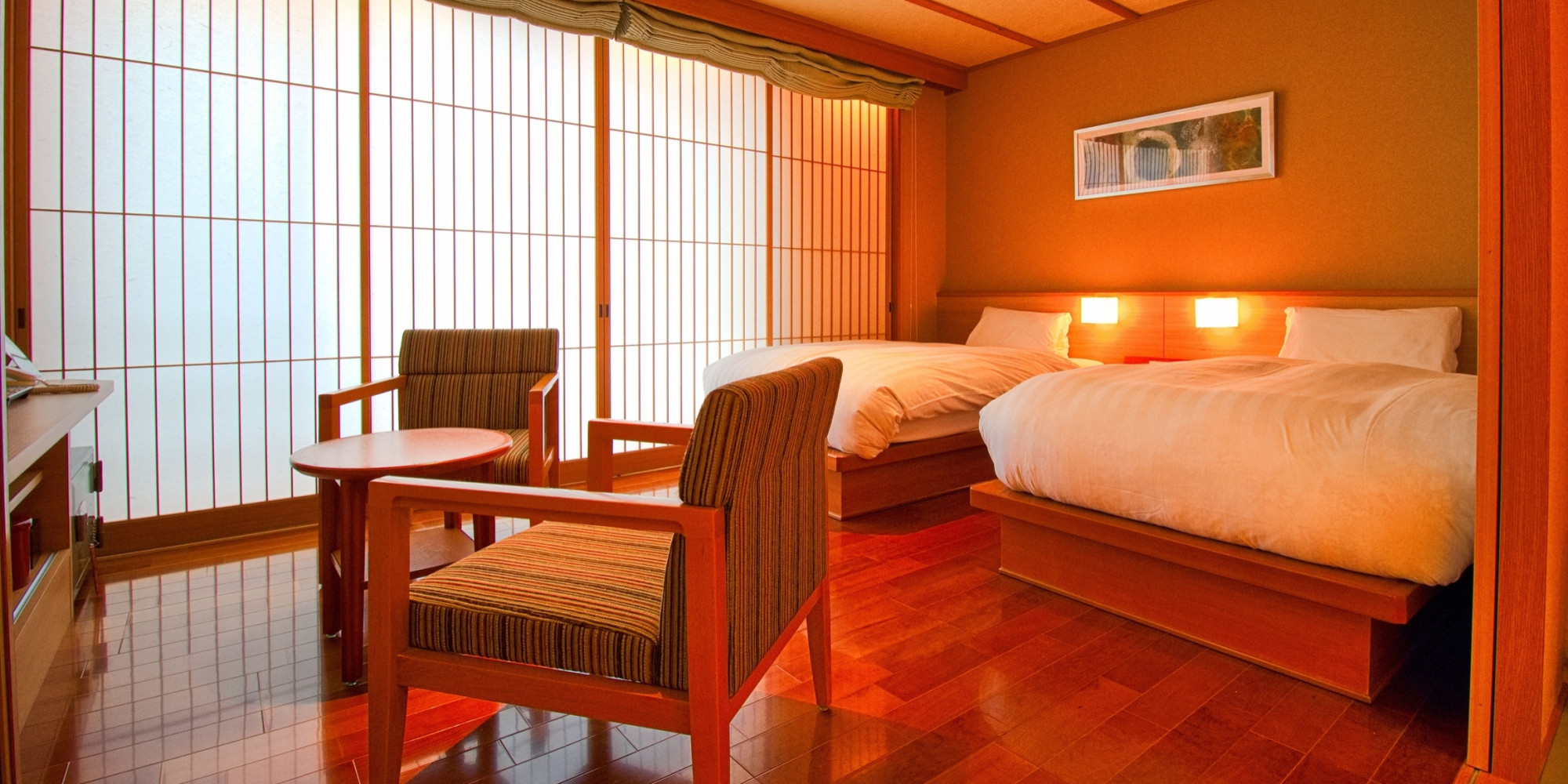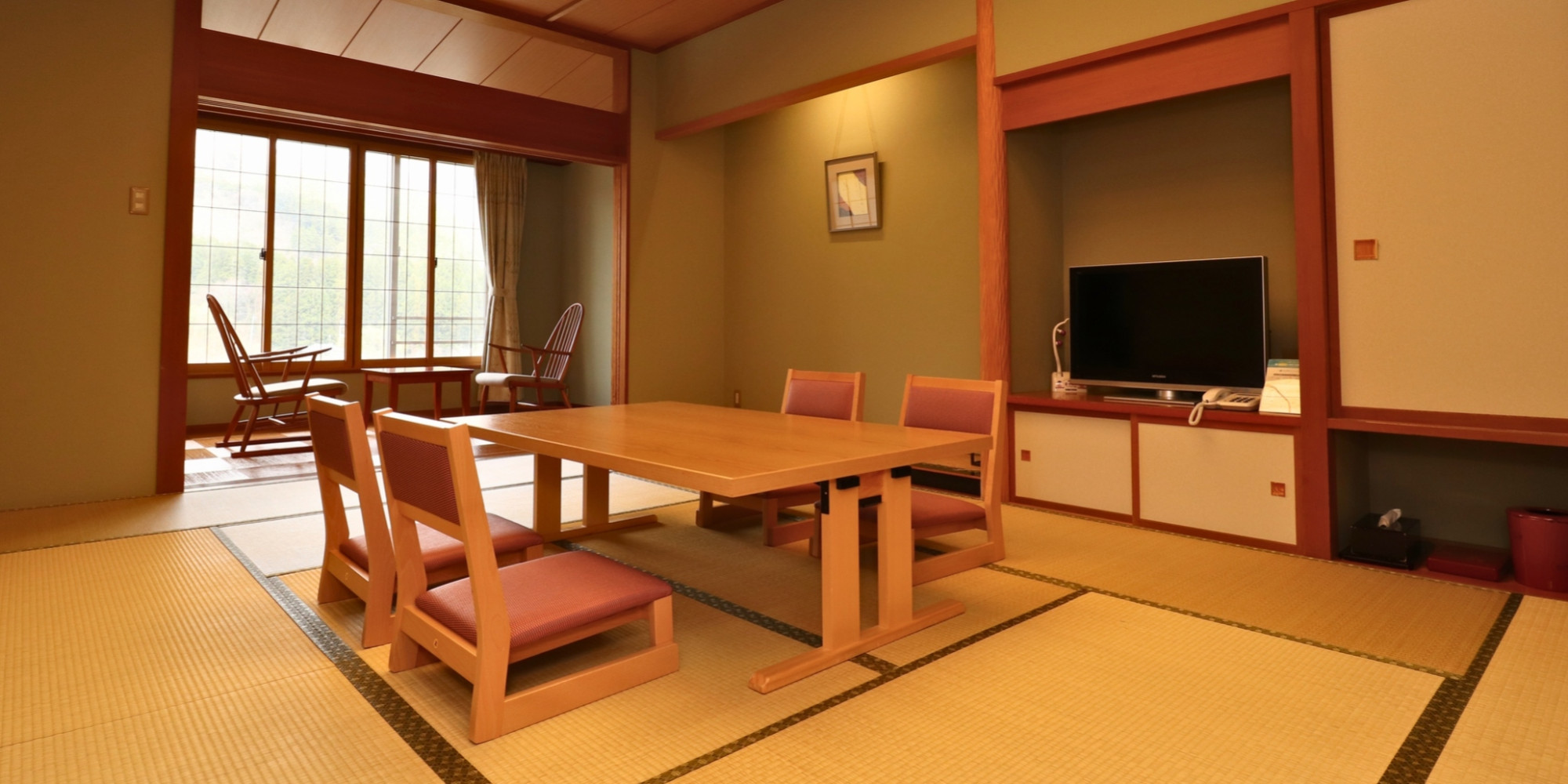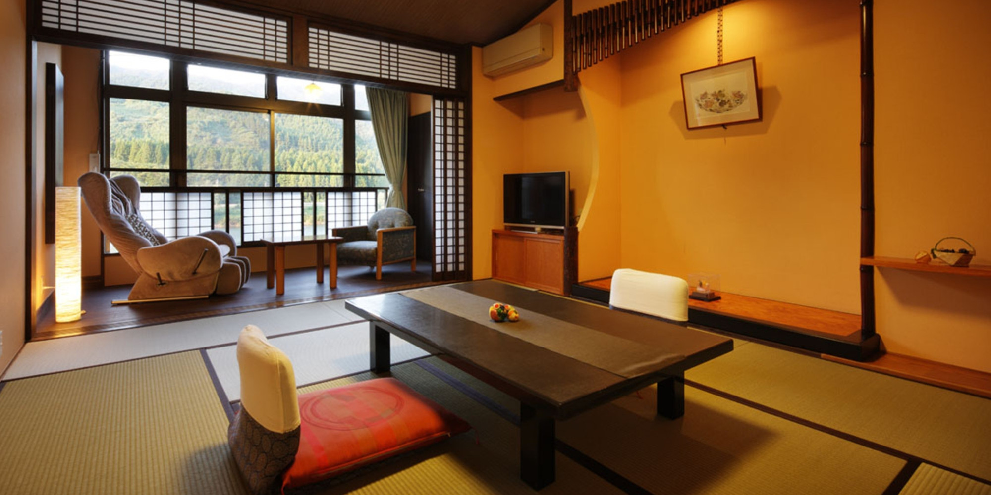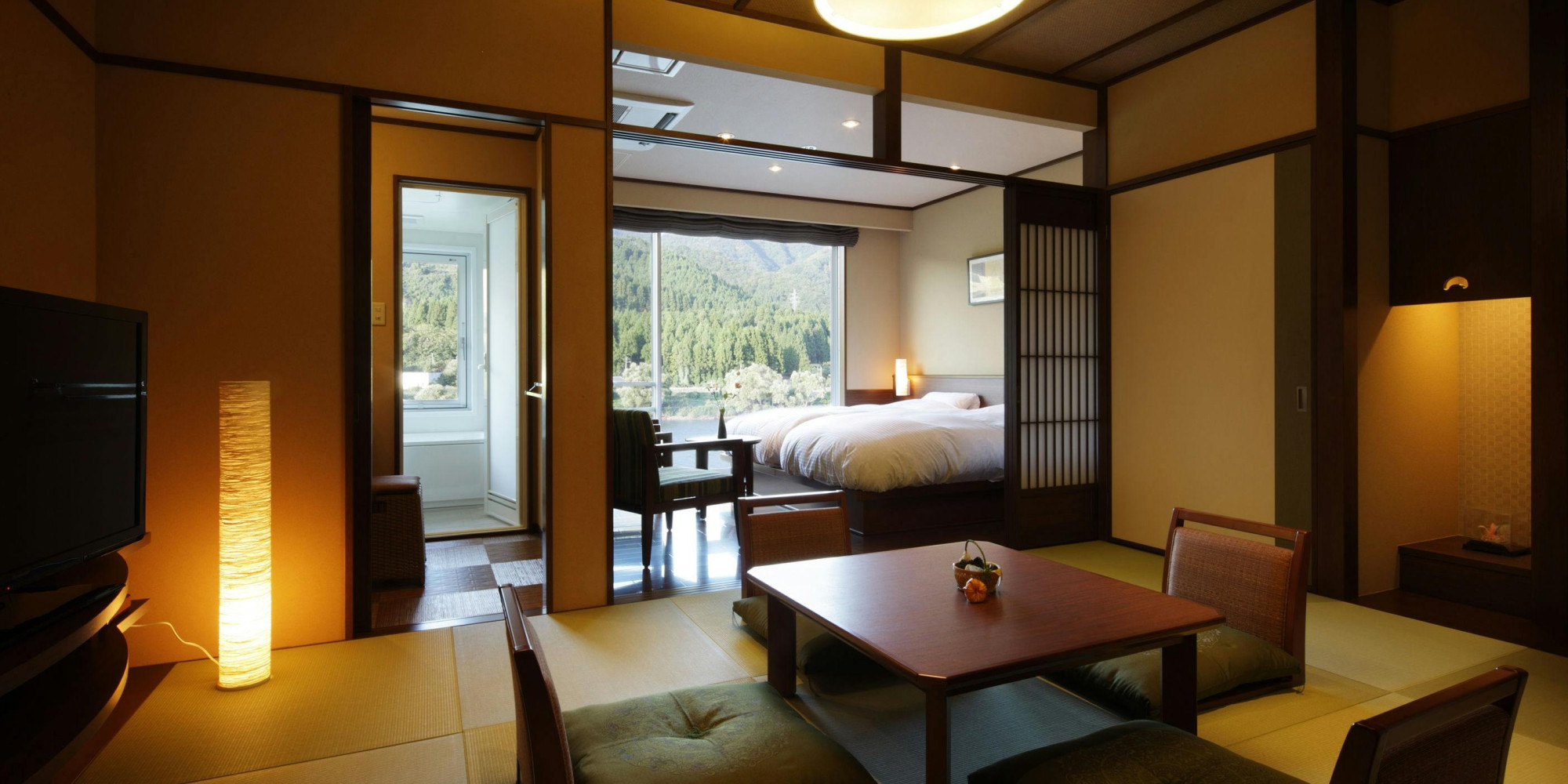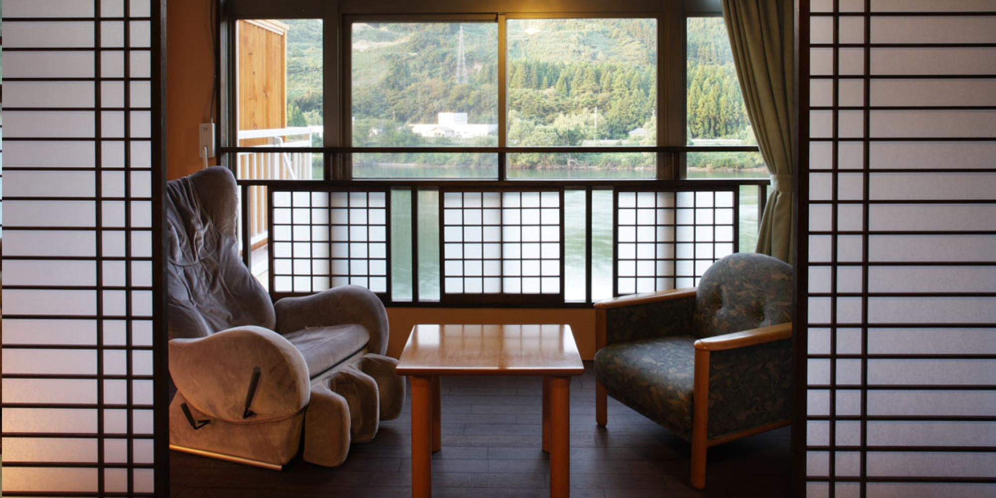 川側のお部屋ではありませんが、他のお部屋タイプには無い灯り障子で演出されたおしゃれな空間でお過ごしください。