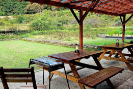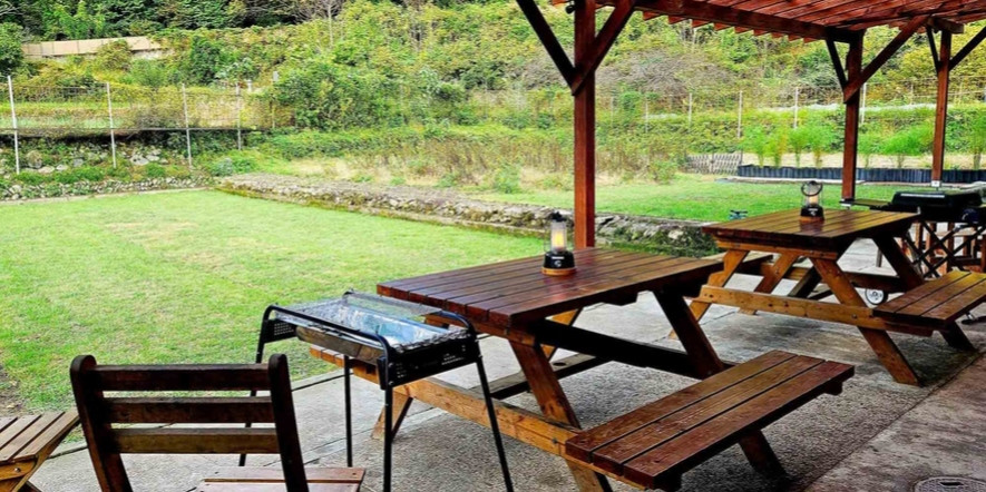 大きなテーブルを設置しているので、ゆったりとBBQを楽しめます
