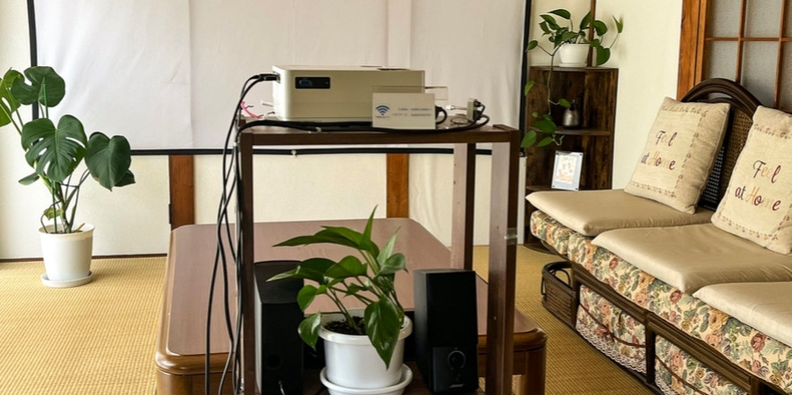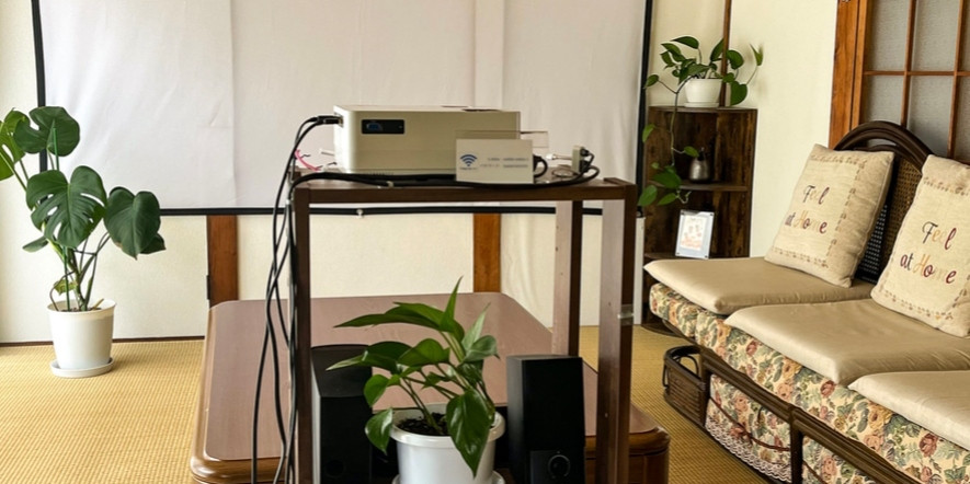 リビングにはプロジェクターも完備!是非お好みの映像を大画面で