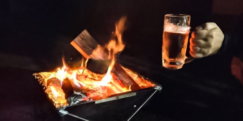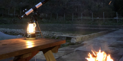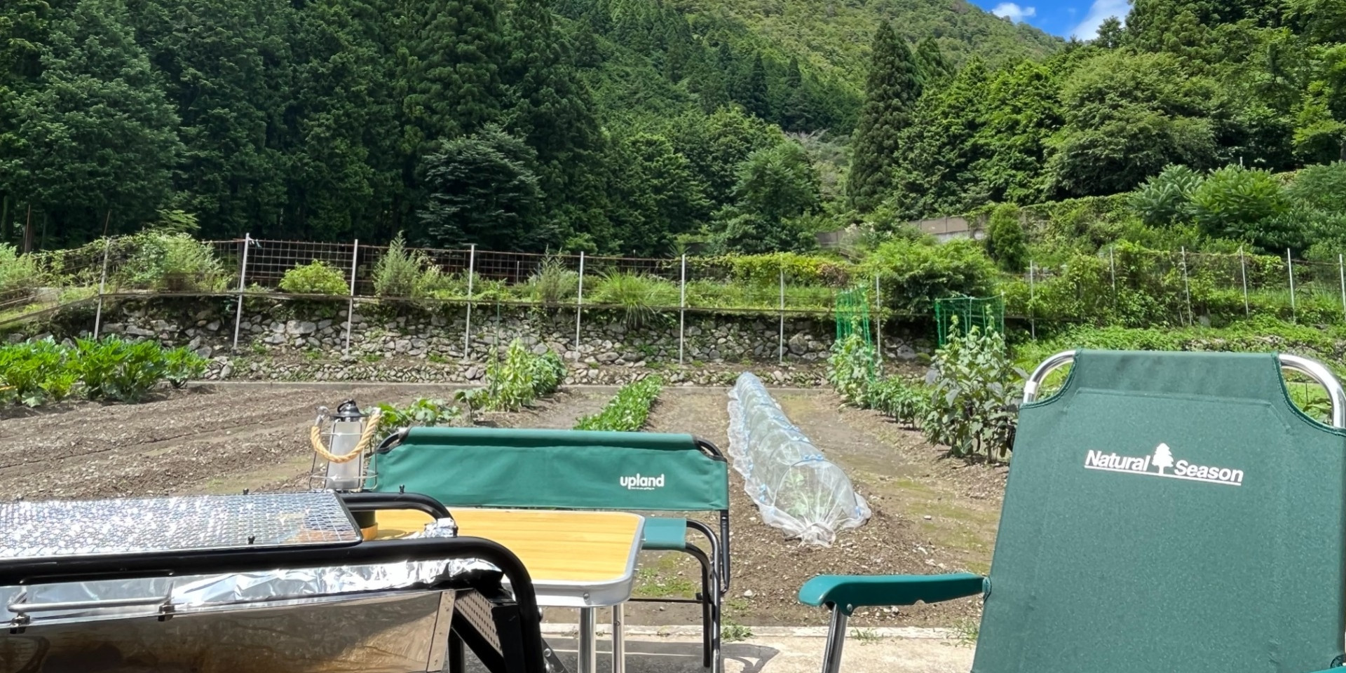 畑で野菜を収穫し、囲炉裏に火を入れ、焚き火を囲む夜。
