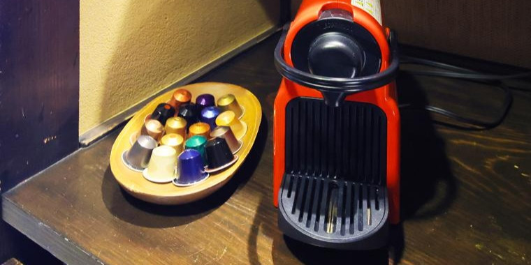 すべてのお部屋にネスプレッソのコーヒーマシンが置かれていますが、驚くべきはカプセルの多さ。