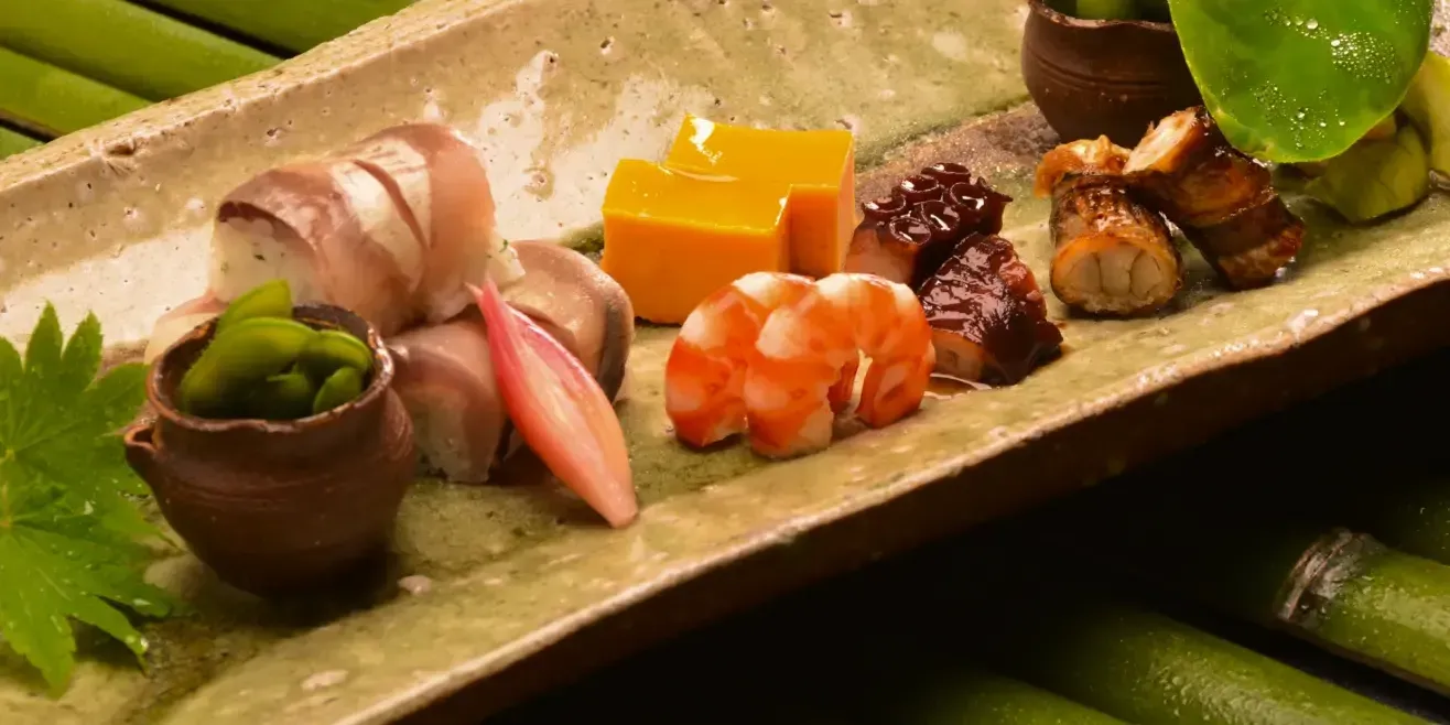 鮑や鱧、旬の青魚など、夏に美味しさを増す海の幸を中心に、爽やかで旨味あふれる夏の一皿。