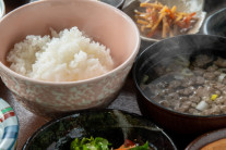 朝食は、やさしい味の和食です。お食事処「すみれ庵」に8:30〜9:00の間にお越しください。