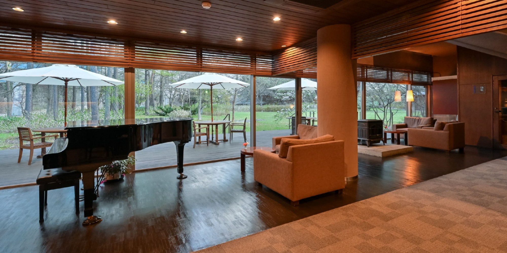木漏れ日が心地良いテラスは、四季折々の移り行く自然をお楽しみいただけます。