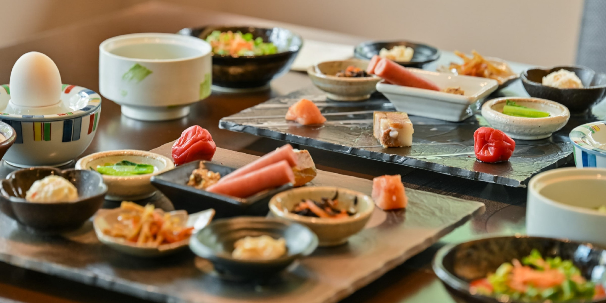 手ざわりのやさしい器に盛られた和朝食で時間を気にしない朝のひと時