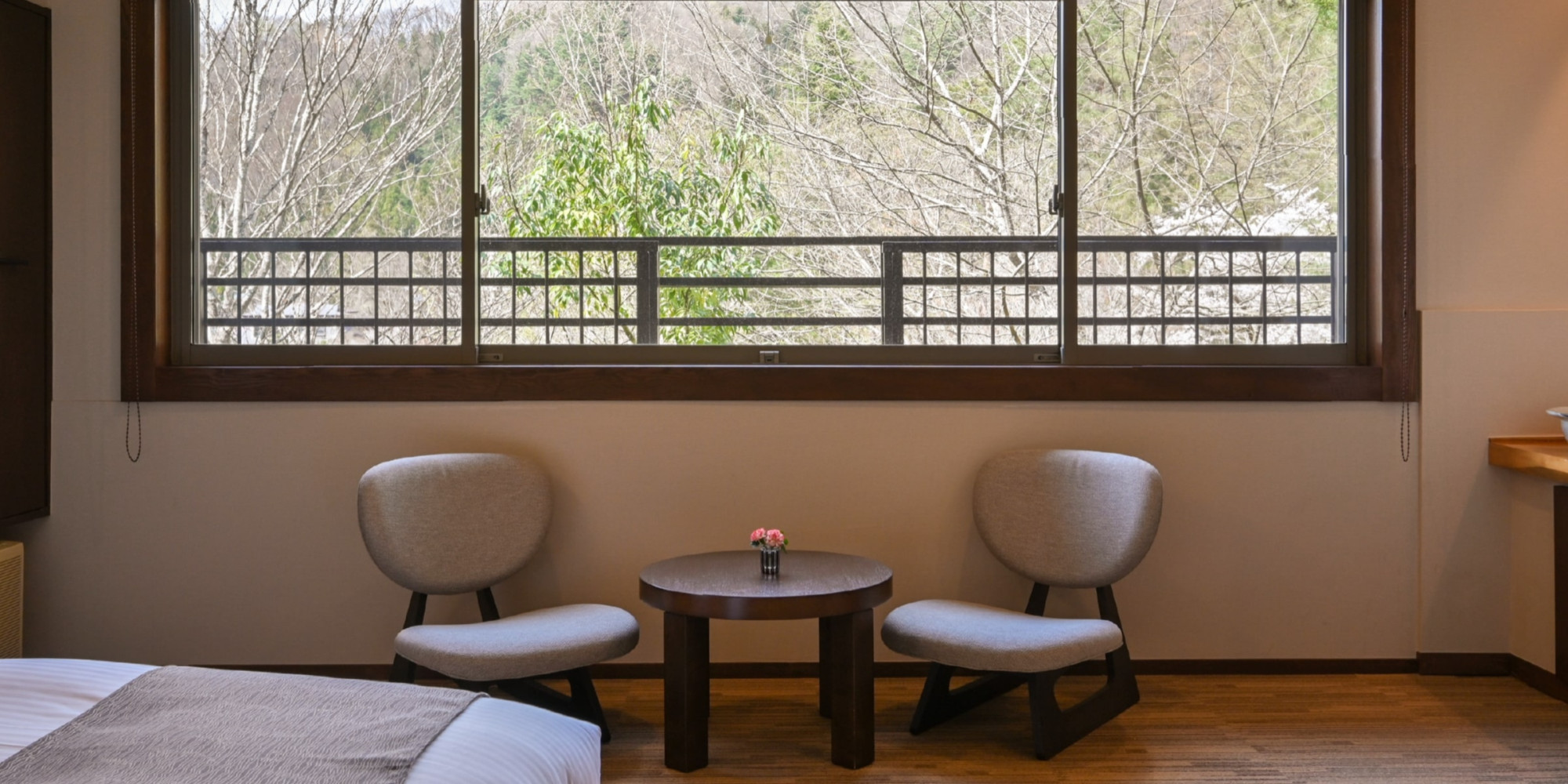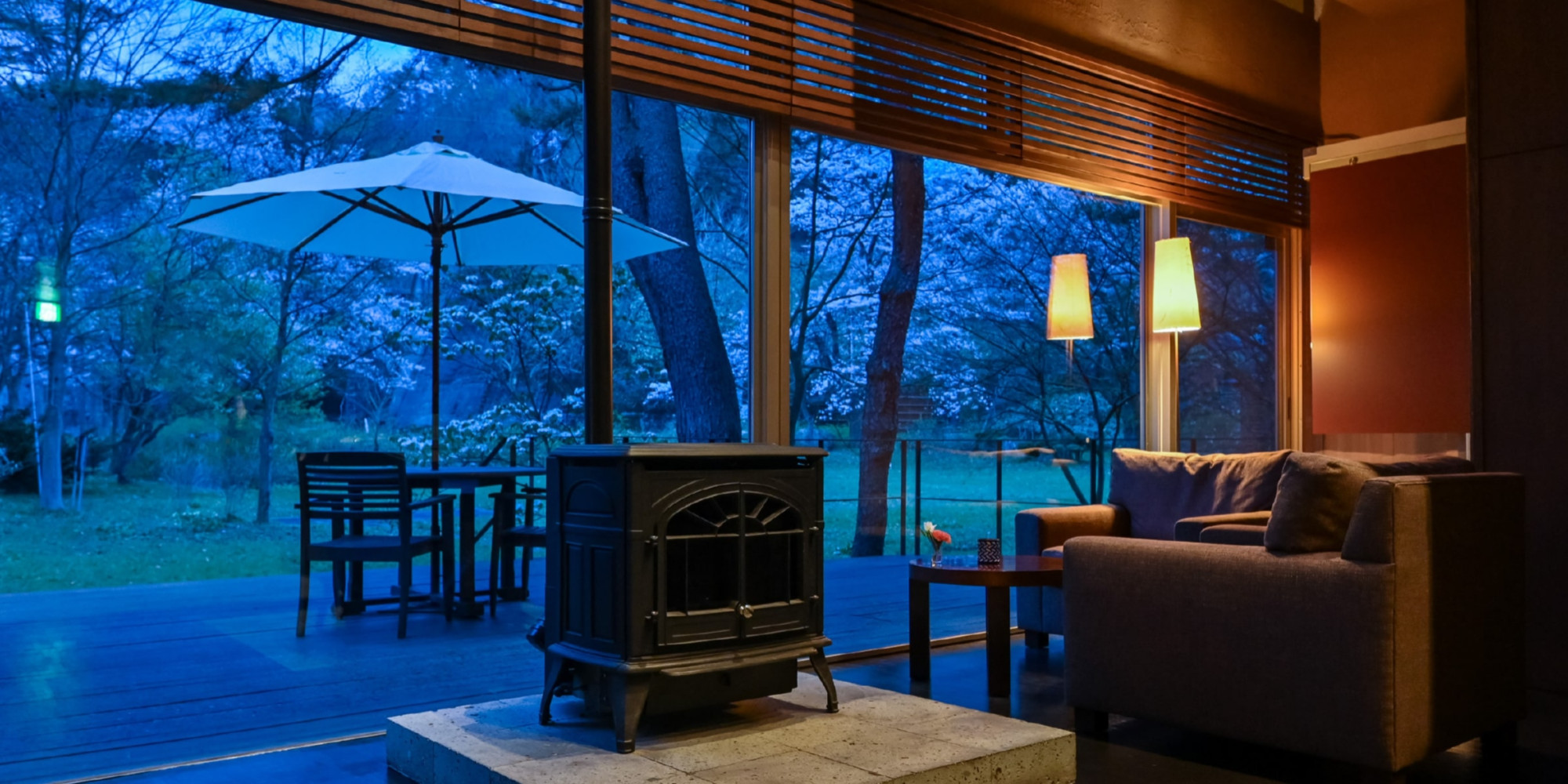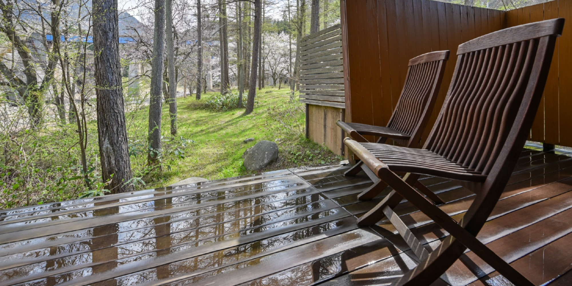 ひのきの香り漂う川のせせらぎが心地よく、オープンデッキで自然の風をお楽しみください。
