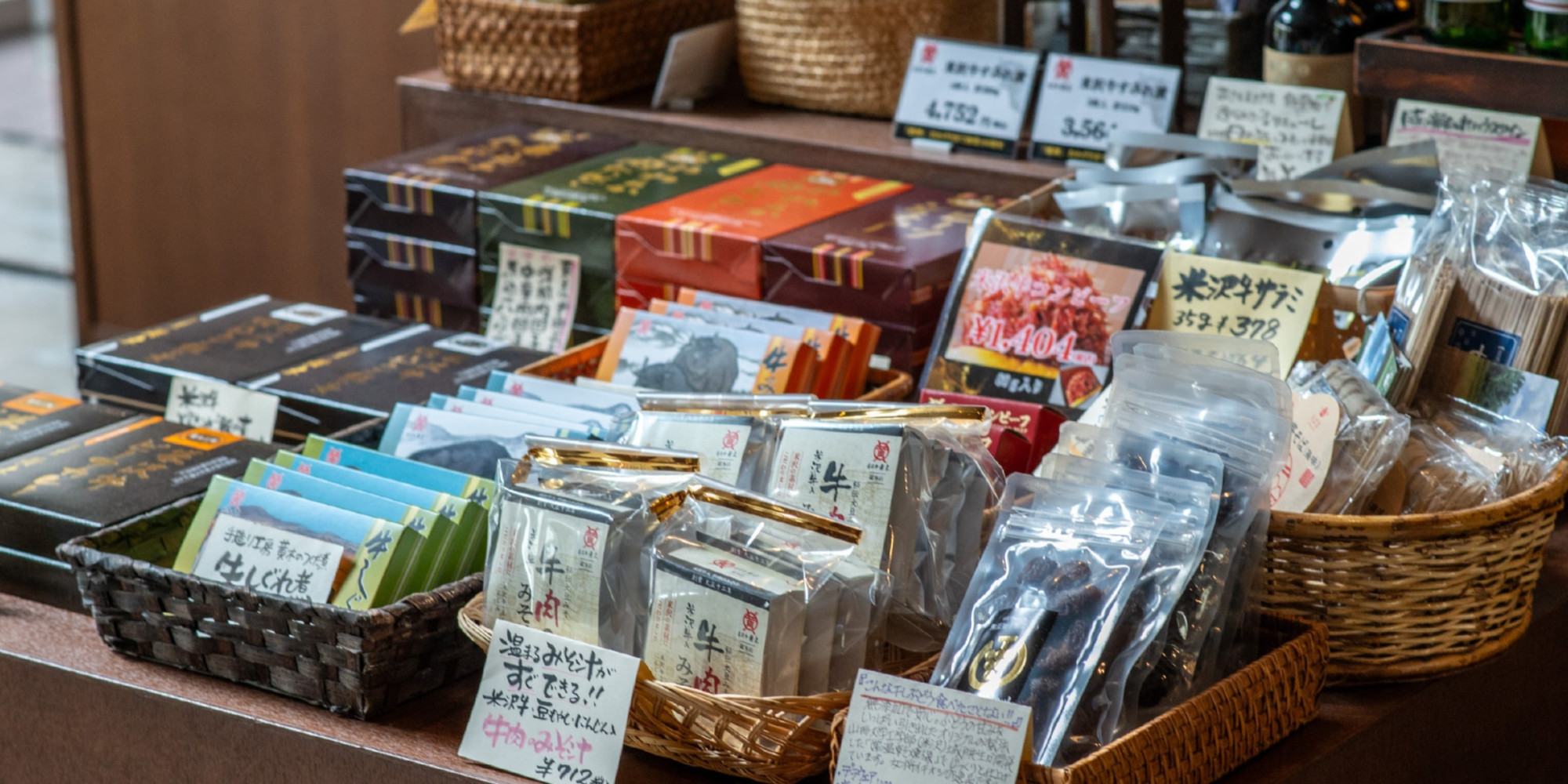 当館の思い出に、米沢牛を使った商品の他、ぬくもりのある商品を取り揃えております。